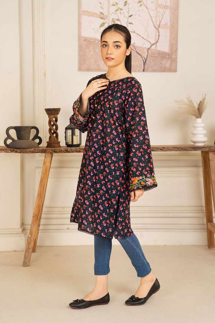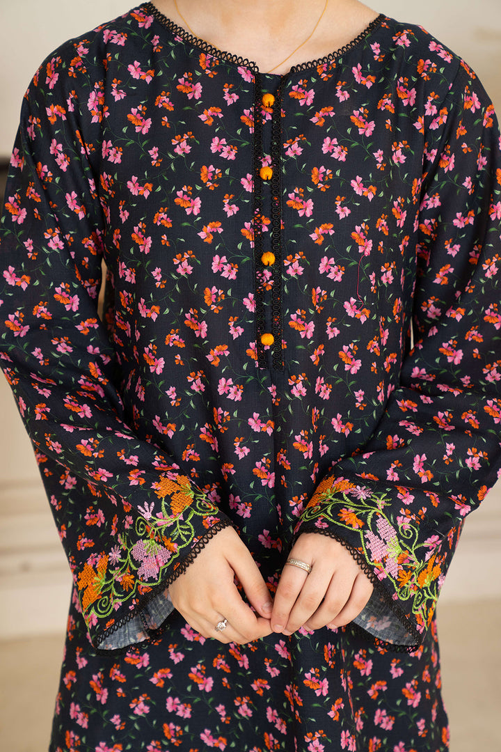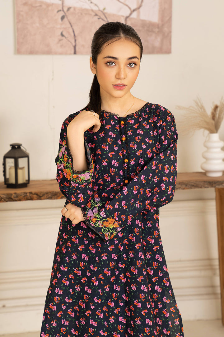 Daisy Outfit - Meira 1 PC Printed & Embroidered Black Dobbi Cotton Daily Wear