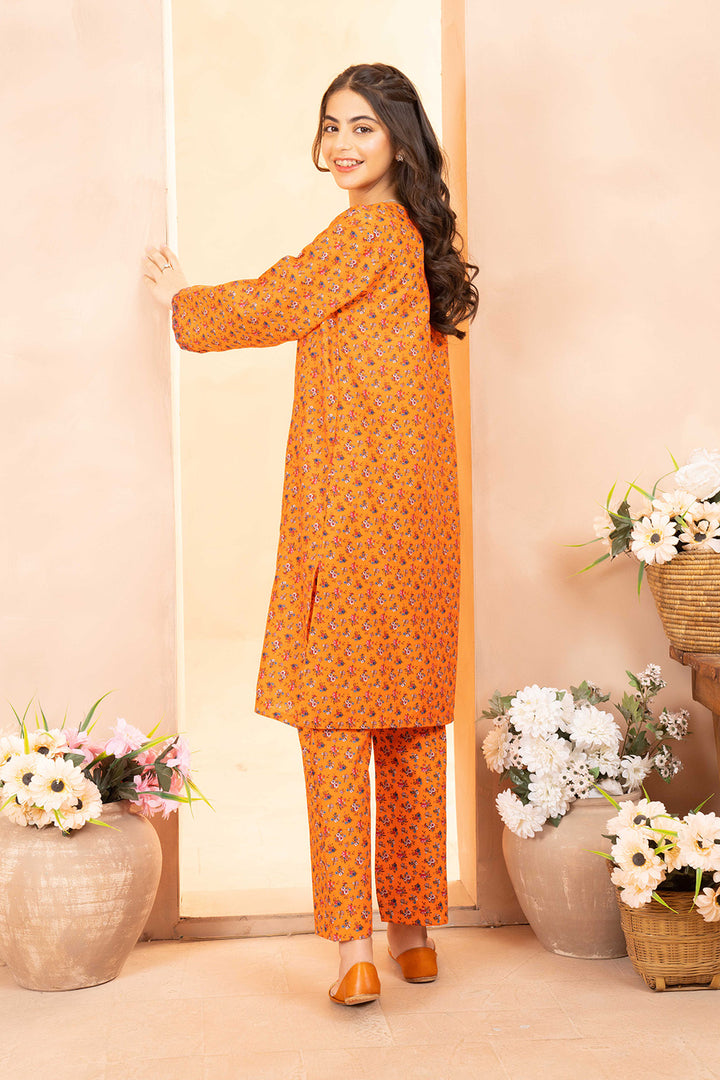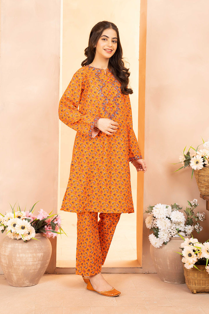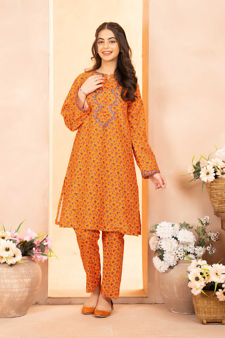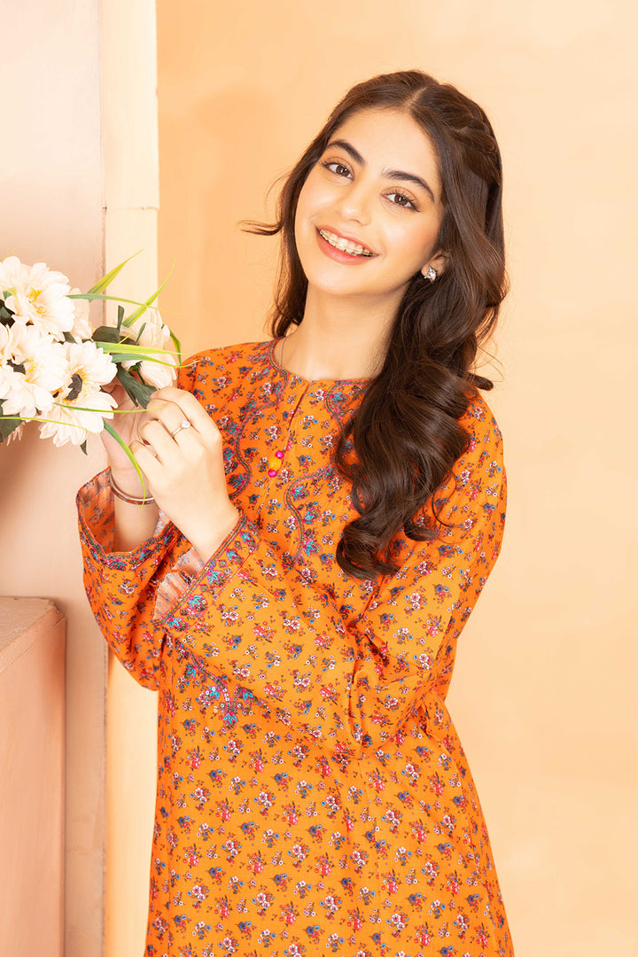 Daisy Outfit - Naranji 2 PC Printed & Embroidered Orange Dobbi Cotton Daily Wear
