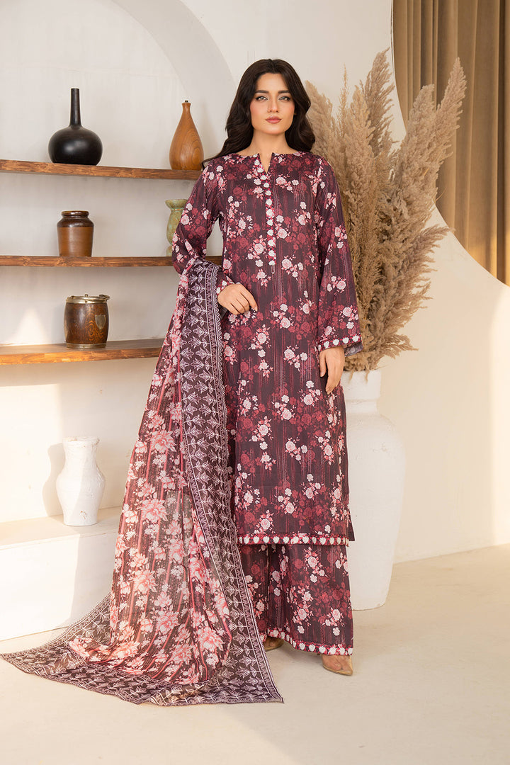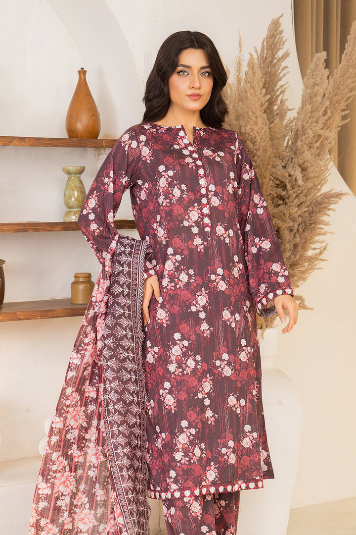 Daisy Outfit - Sage 2 PC Printed & Embroidered Mehroon Swiss Lawn Daily Wear