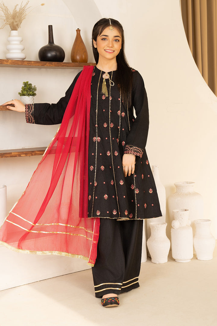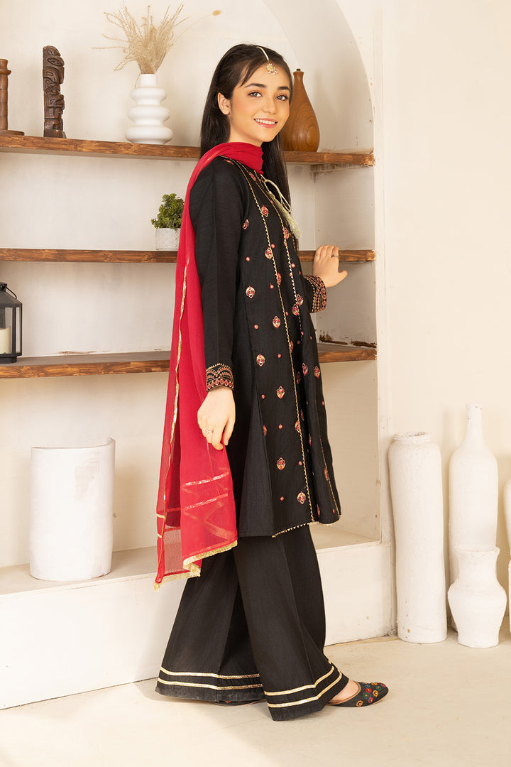 Daisy Outfit - Tara 2 PC Embroidered Black Raw Silk Festive/Party Wear