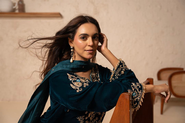 Exude timeless luxury with our Ayla — Midnight Velvet 3 Piece, designed for festive occasions and evening wear. Crafted with premium velvet, this outfit combines richness with intricate handwork for a regal look.
