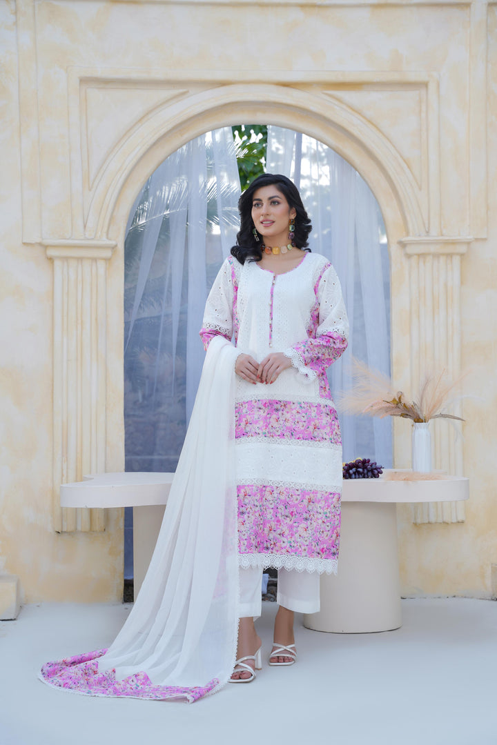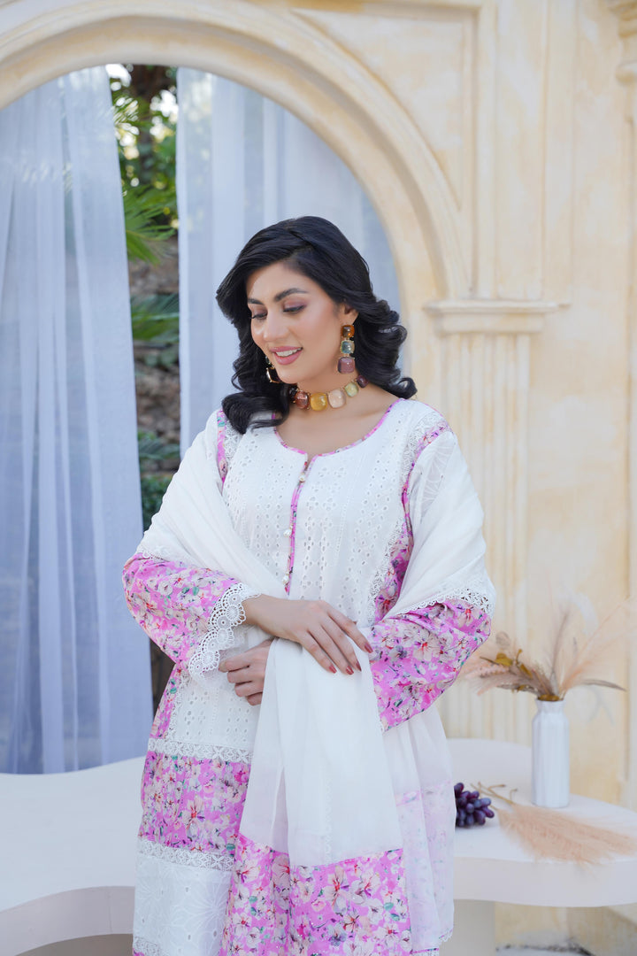 Desi Stitch - Elegant chikankari Lawn 3-Piece Suit With Chiffon Dupatta Eastern Wear For Girls