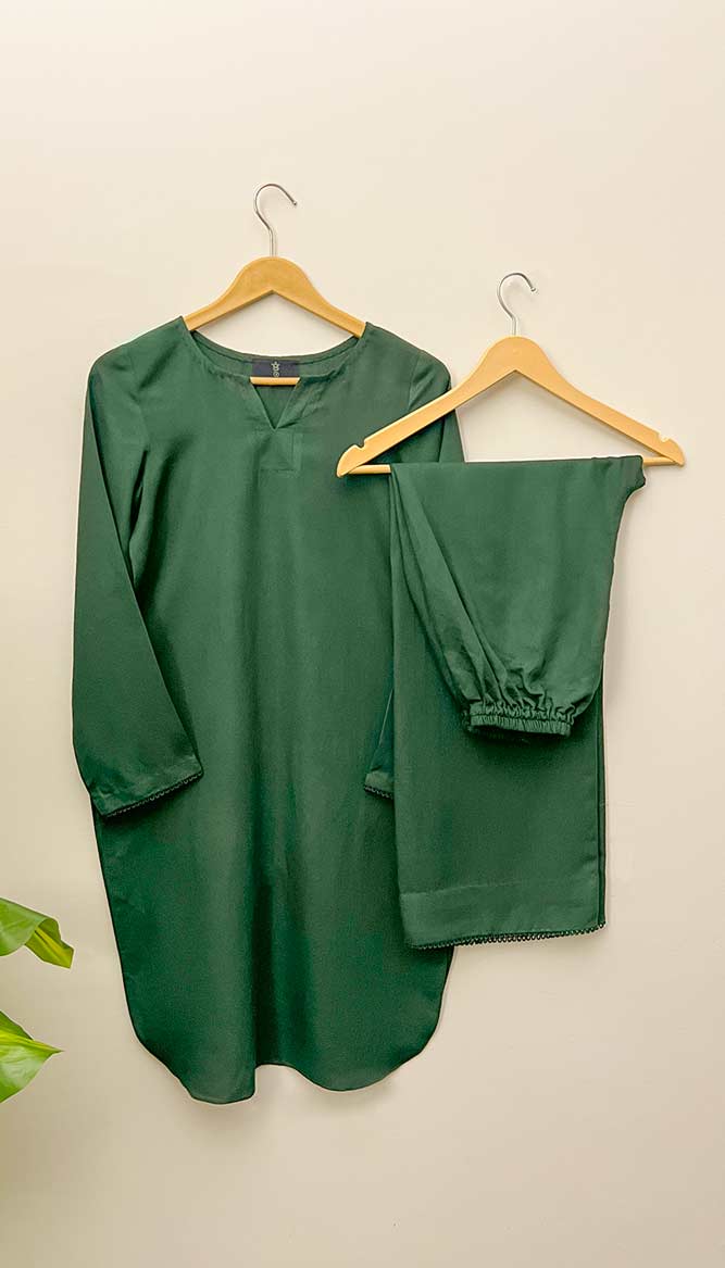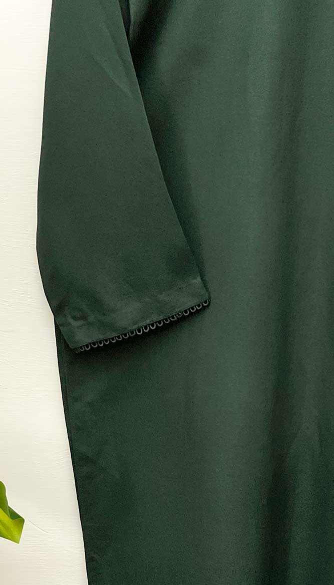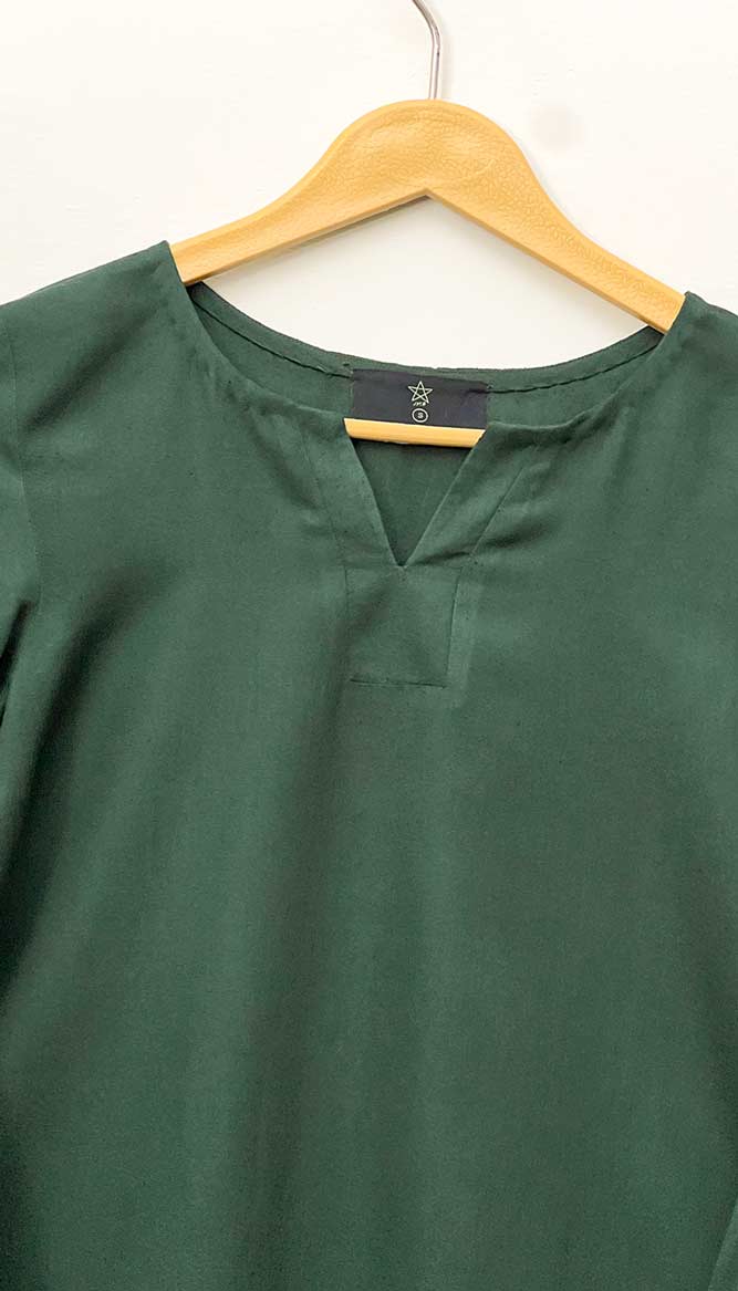 The "Evergreen" Karandi shirt is ideal for those who want bold, rich tones. This shirt's intense forest green color stands out while keeping a refined appearance. It is a perfect piece for both casual and formal situations.