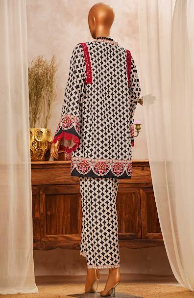 Digital Printed Swiss Lawn Stitched Shirt with Lace work and Stitched Trouser