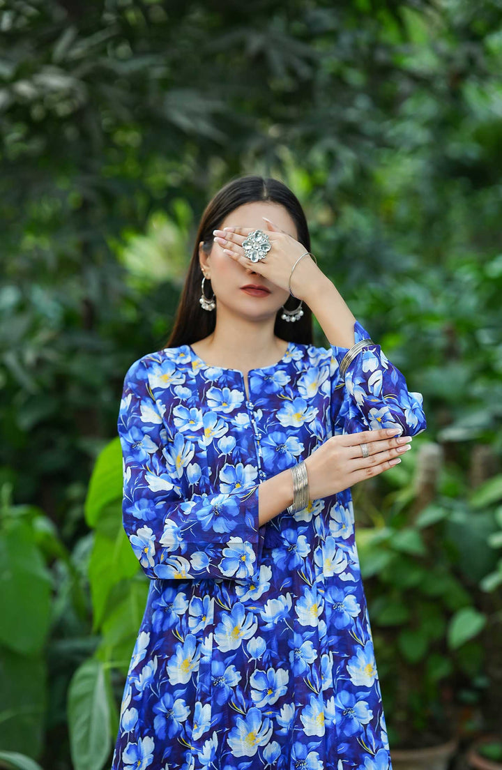 Amna Khadija - Floral Elegance Neno Karra-2 Piece=Blue-D-01