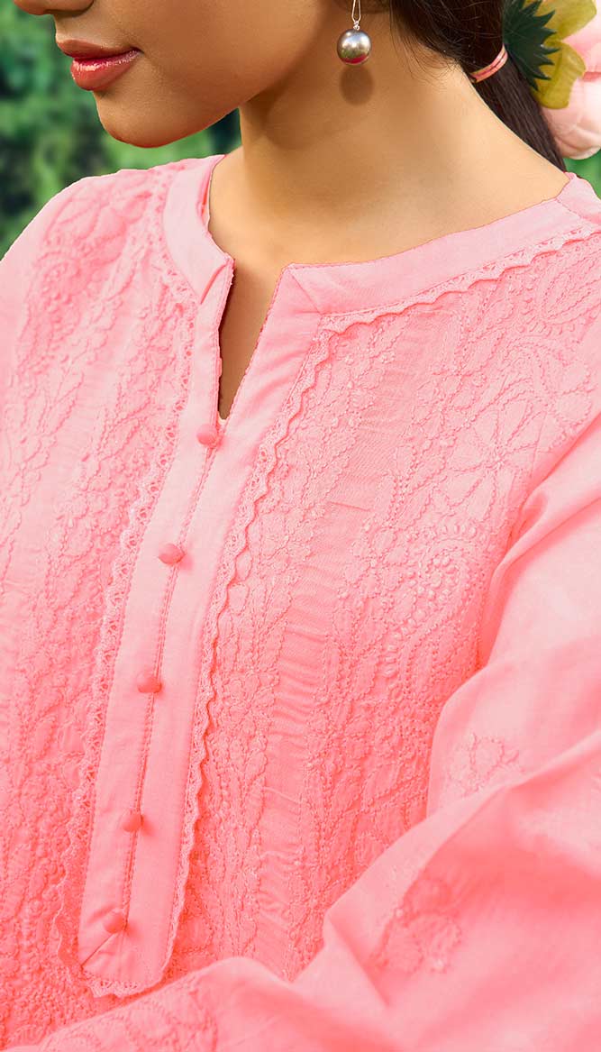 Disclaimer: Please note that the Indian chikankaari design may differ from the image due to its unique handcrafted nature, where each design is one-of-a-kind and can't be mass-produced. Hence showcasing the beauty of this old-age Indian craft. However, the outfit's stitching details and color will match the image.