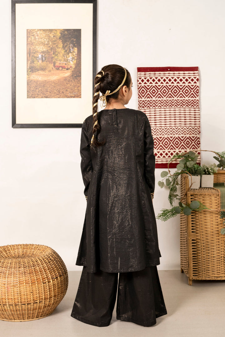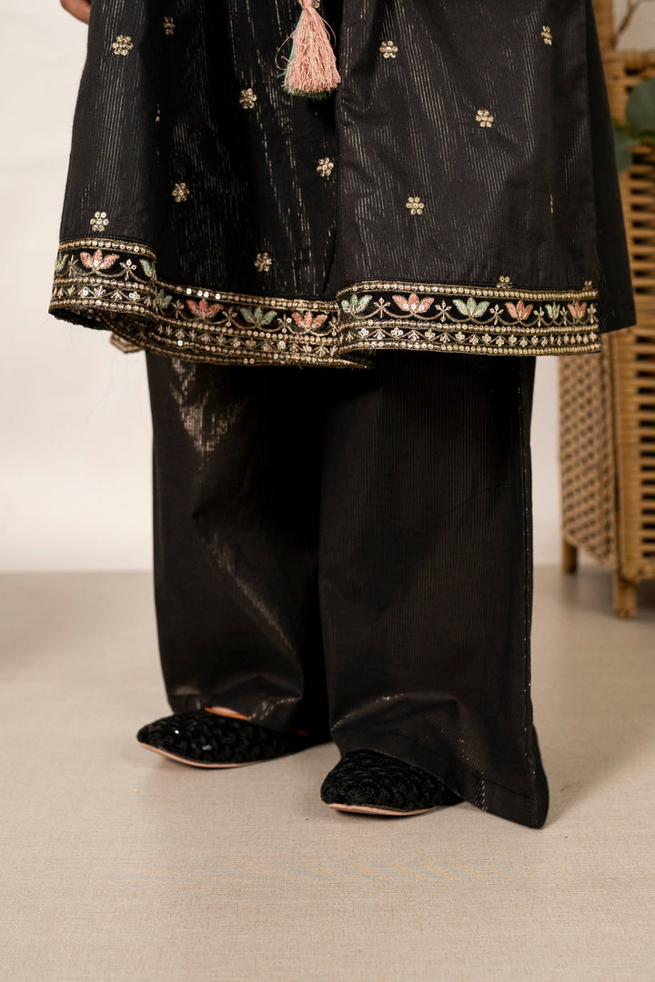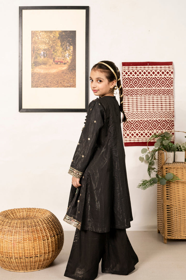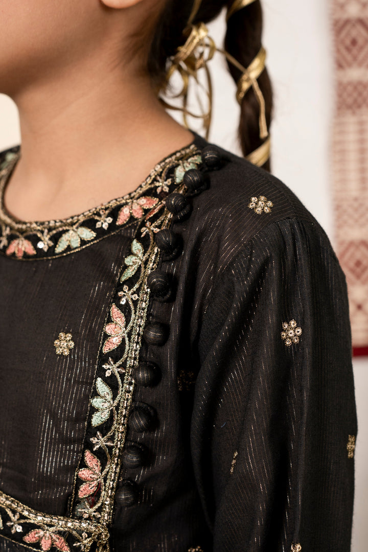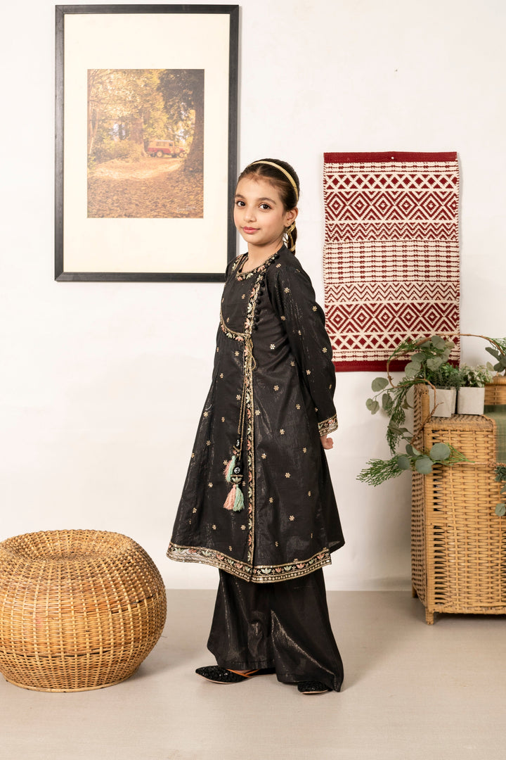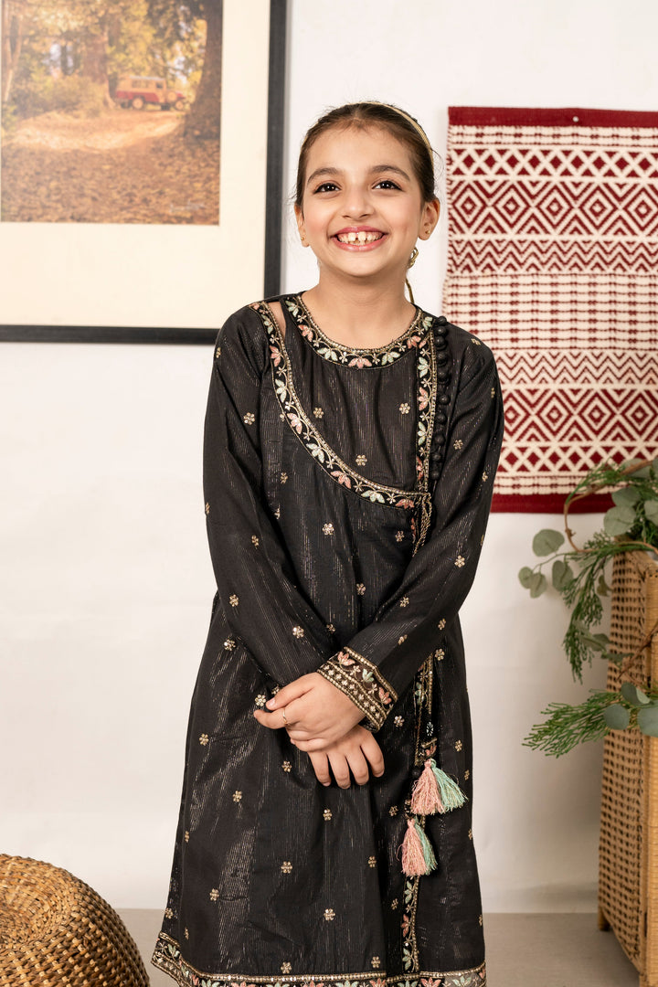 Al Qaswa - Girls Black Embroidered Outfit – 3-Piece Shirt, Pants , and Dupatta Suit Set