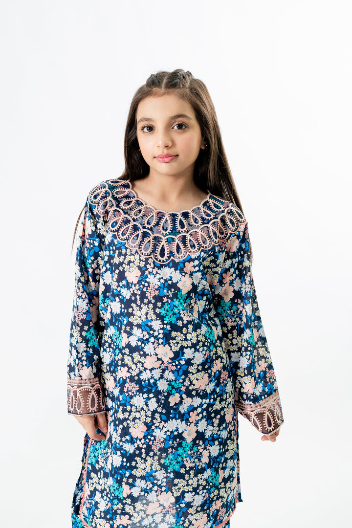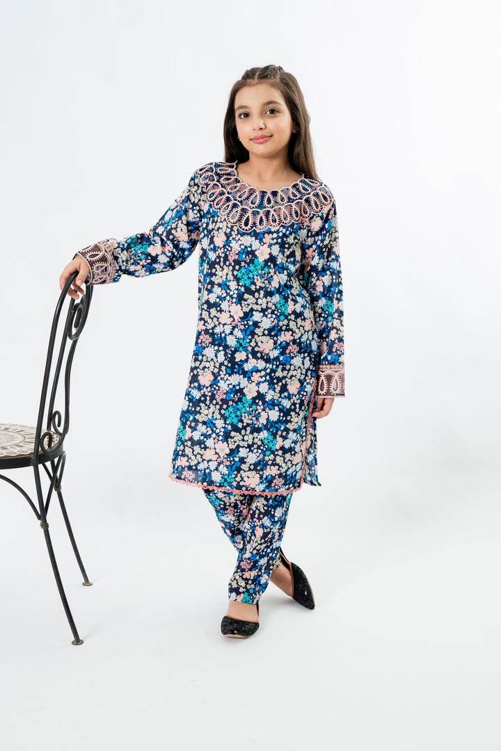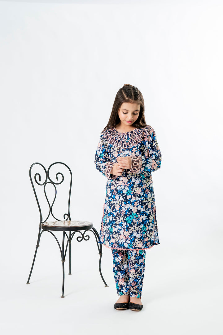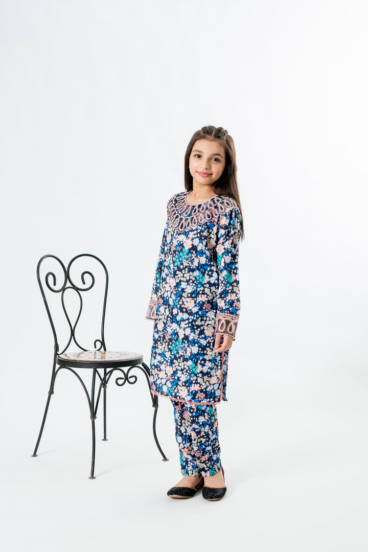 Add charm to your little girl's Eid look with this stunning 2-piece blue printed & embroidered outfit from our Summer Eid Collection 2025. This traditional yet trendy coord set is designed for comfort and festive flair.
