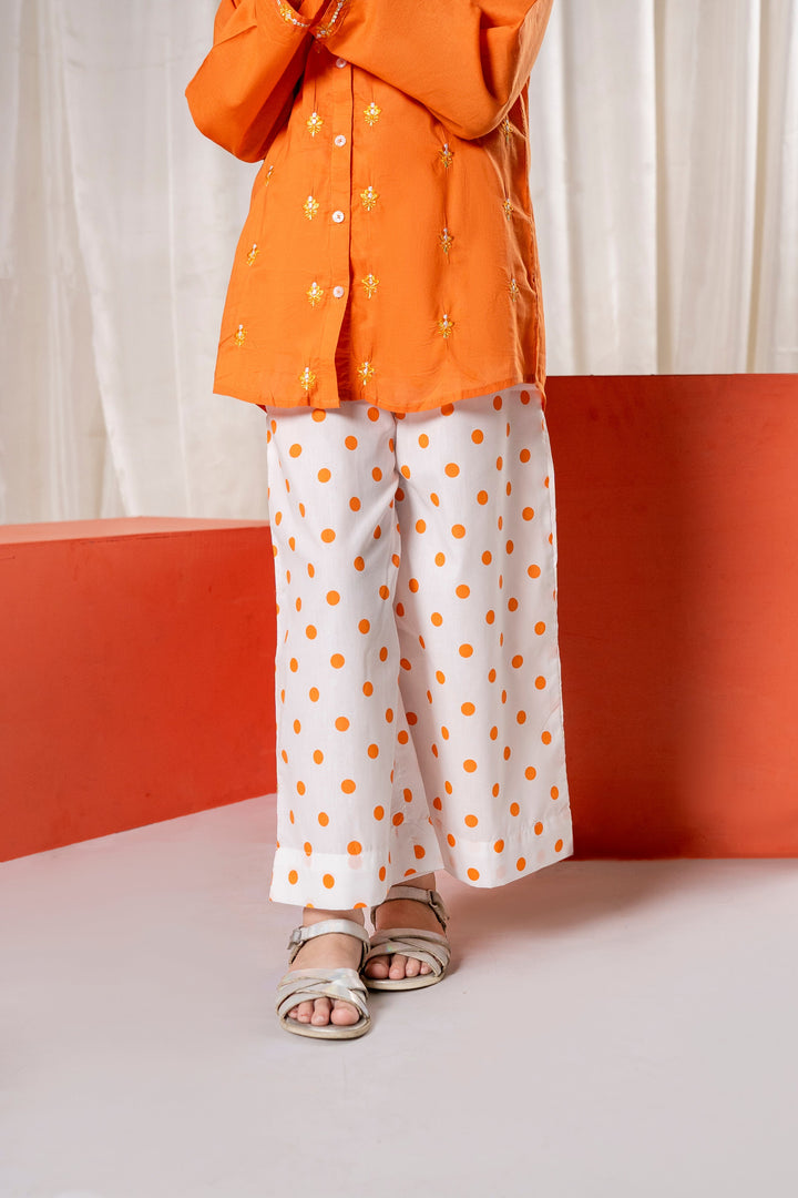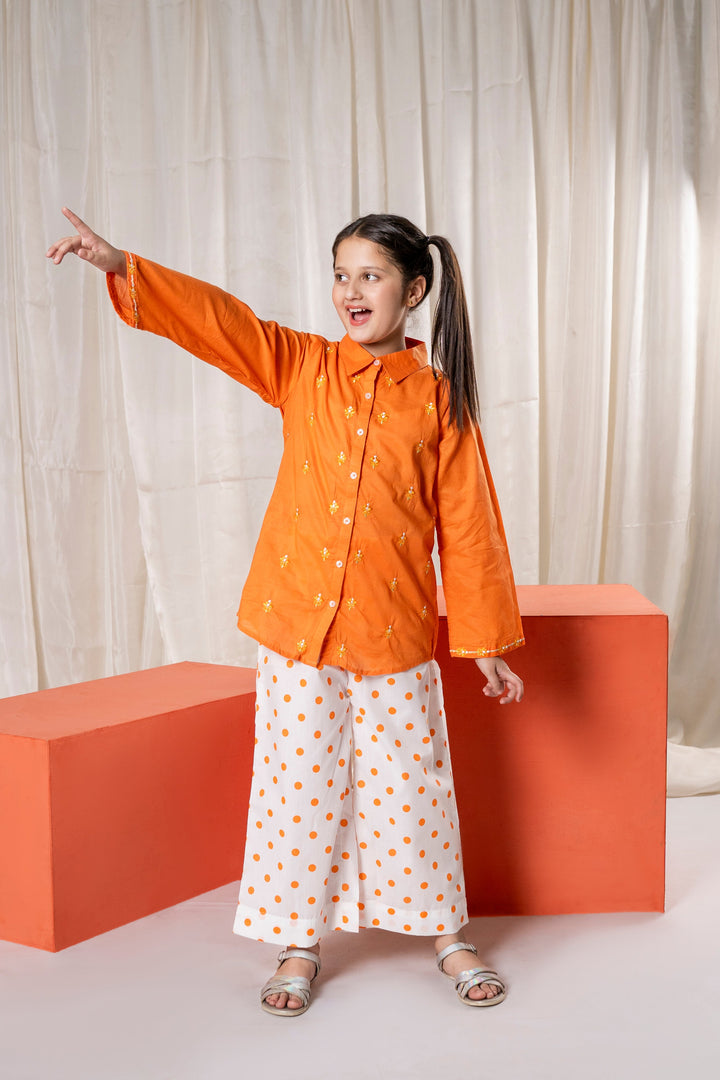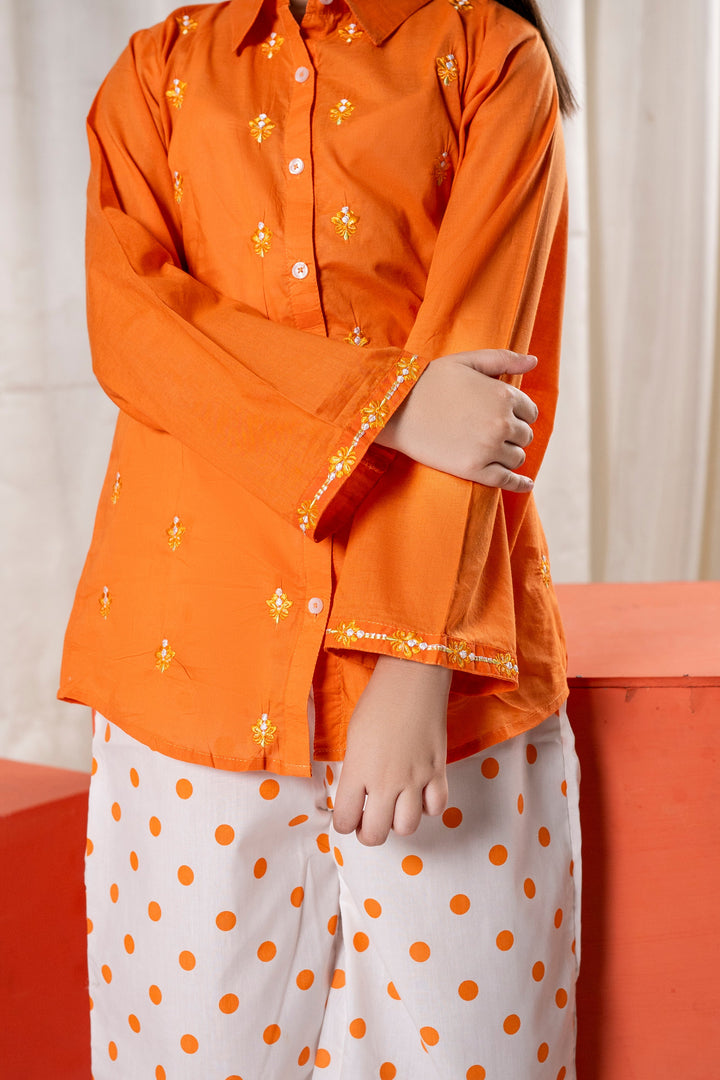 Al Qaswa - Girls Orange Embroidered Eid V-1 Outfit – 2-Piece Coord Suit Set