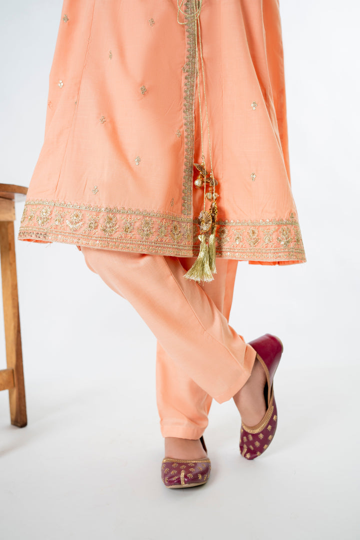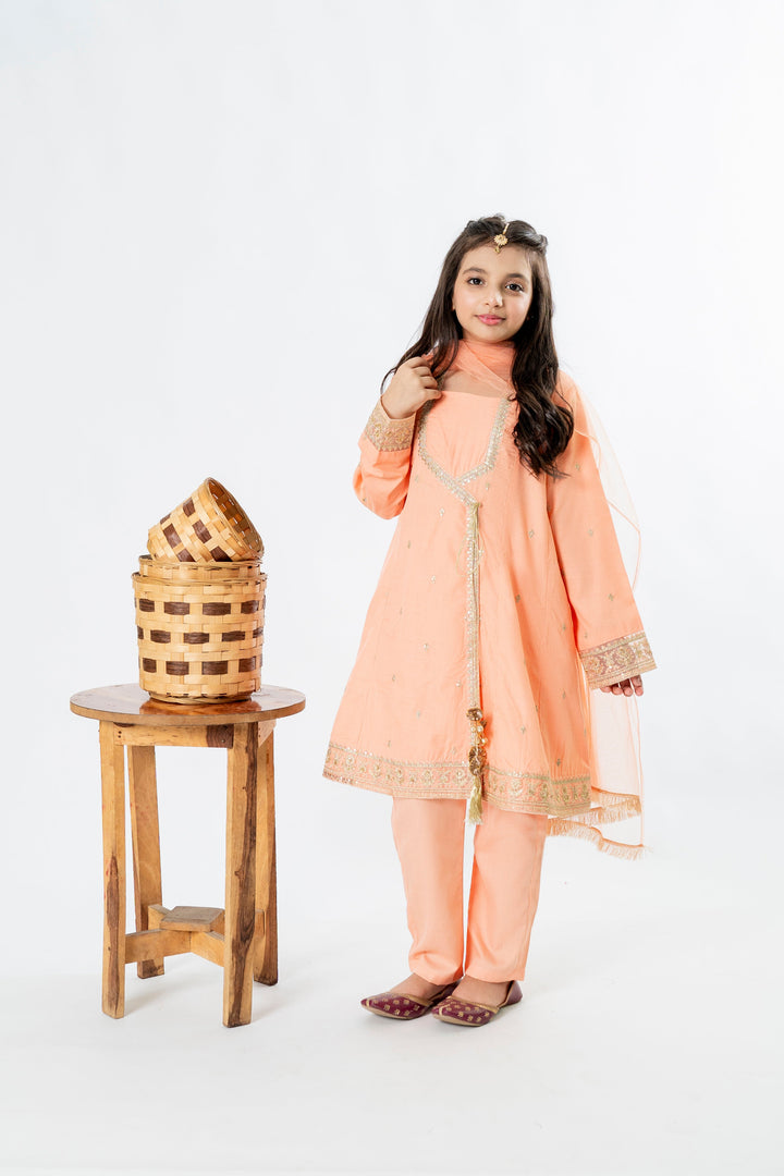 Dress your little girl in elegance this Eid with our 3-Piece Peach Embroidered Cotton Outfit, part of the Spring/Summer Eid Collection 2025. A perfect blend of traditional charm and festive flair, designed for both comfort and celebration.