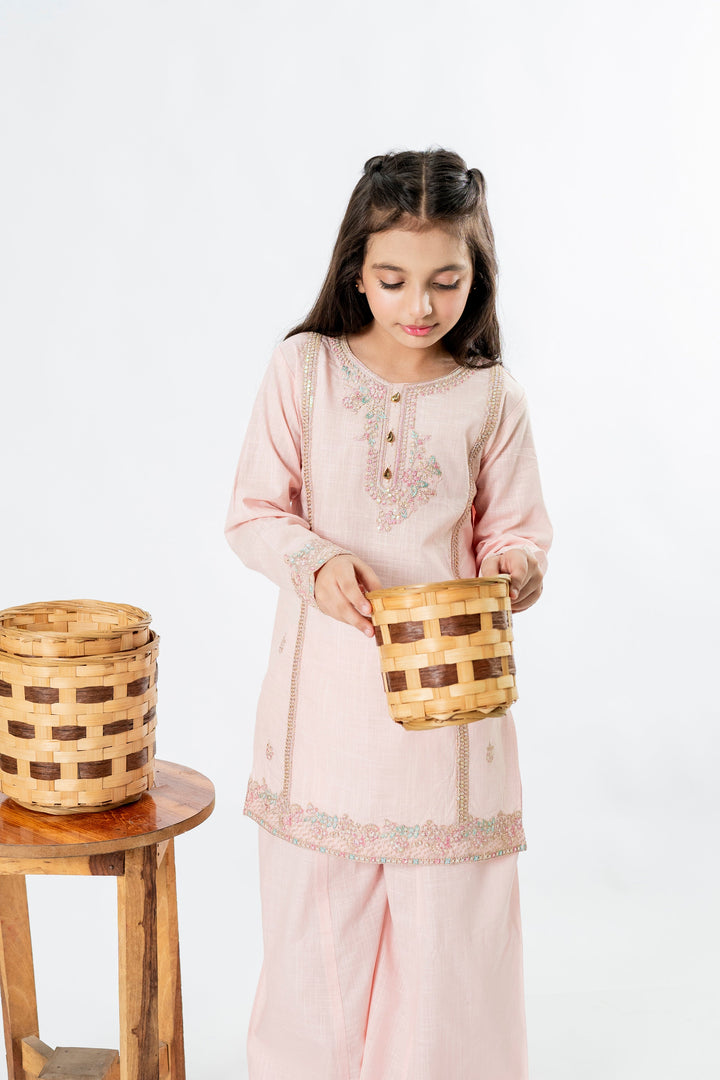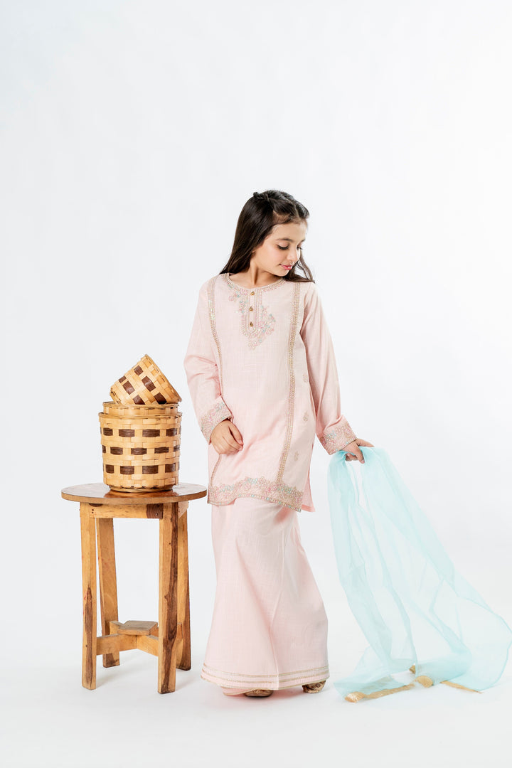 Add elegance to your little girl’s festive wardrobe with our 3-Piece Powder Pink Embroidered Lawn Dress, part of the Summer Eid Collection 2025. This traditional yet stylish outfit is designed for both comfort and celebration.