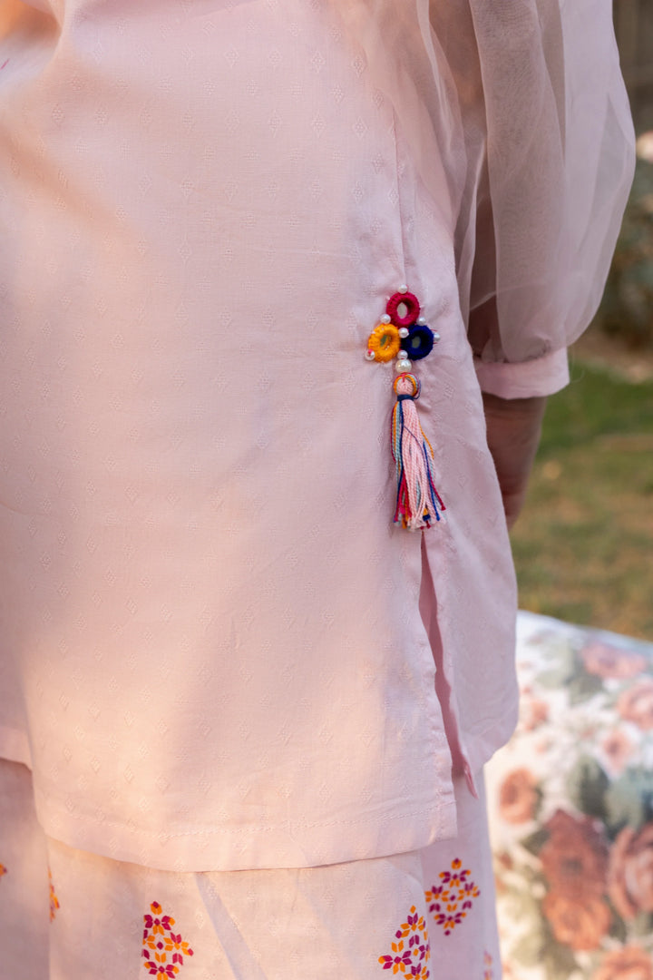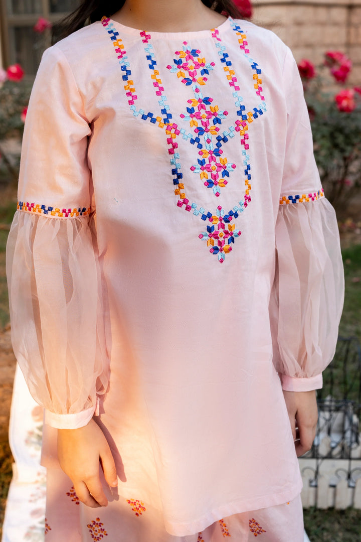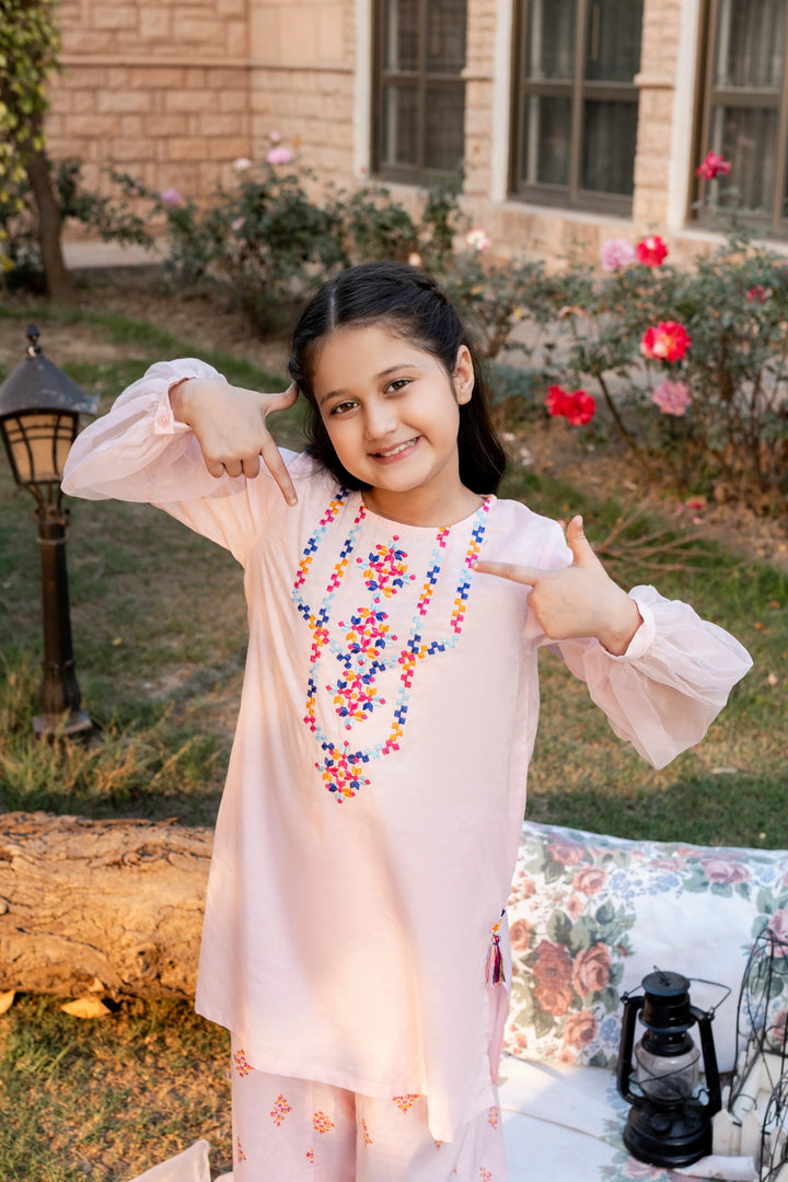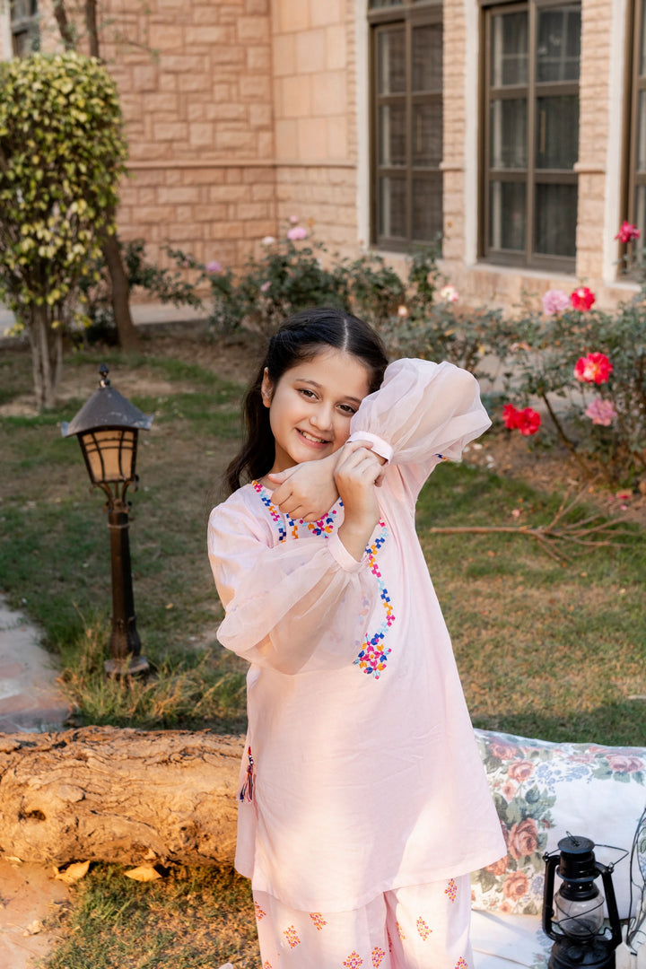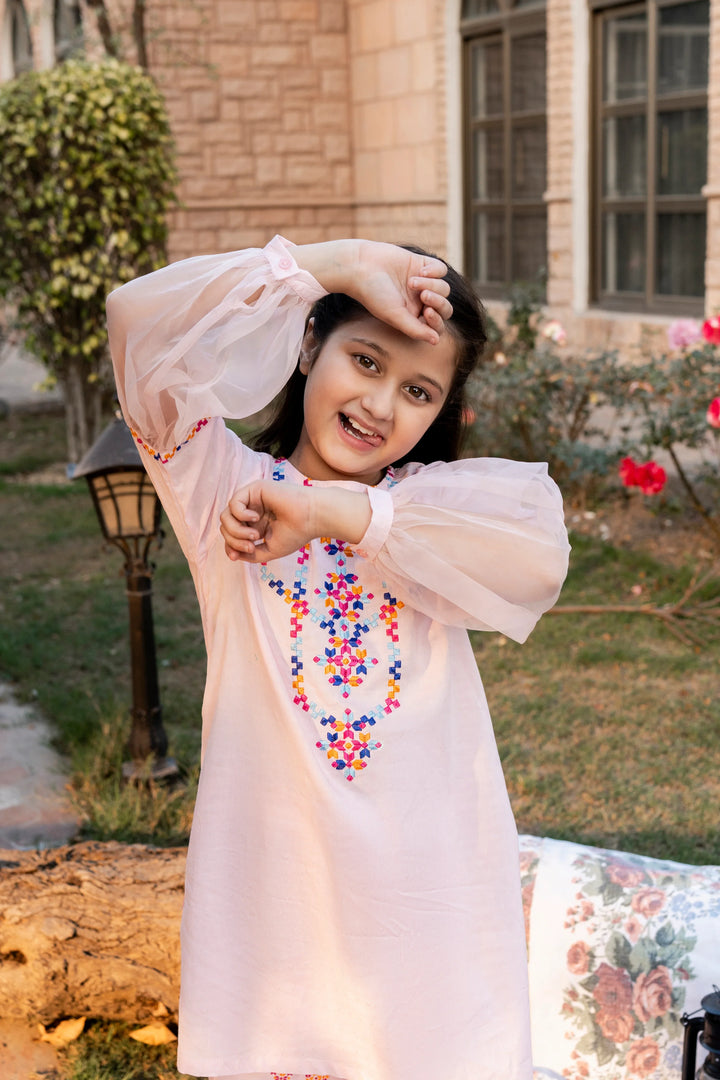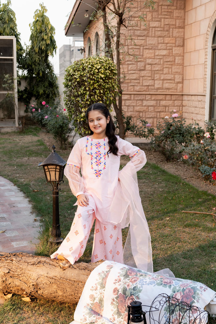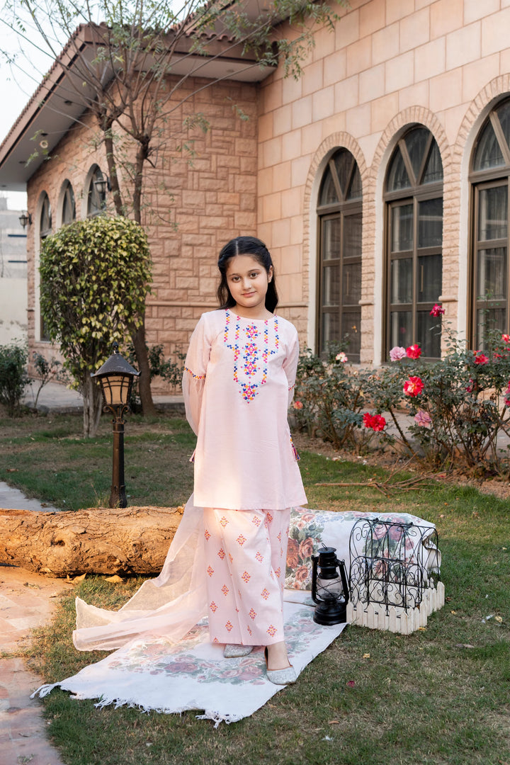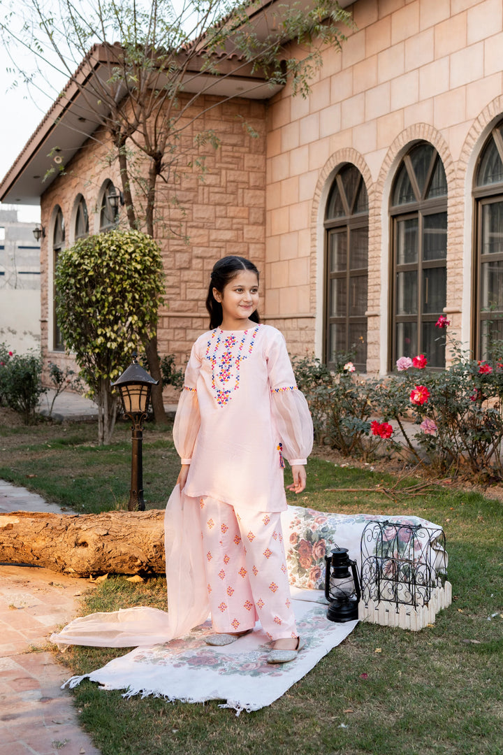3-Piece Eid Dress for Girls – Pink Embroidered Outfit