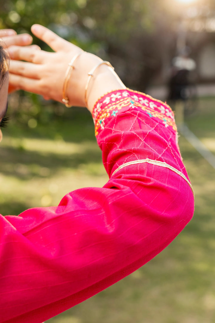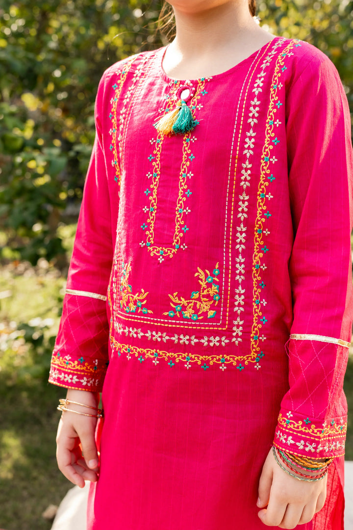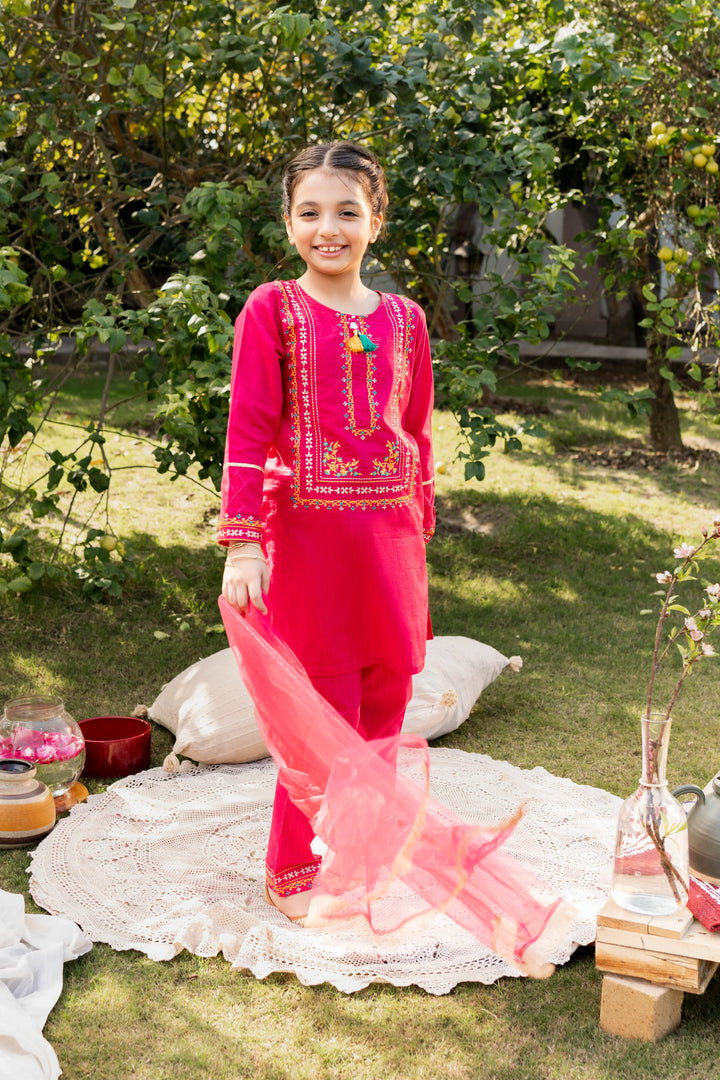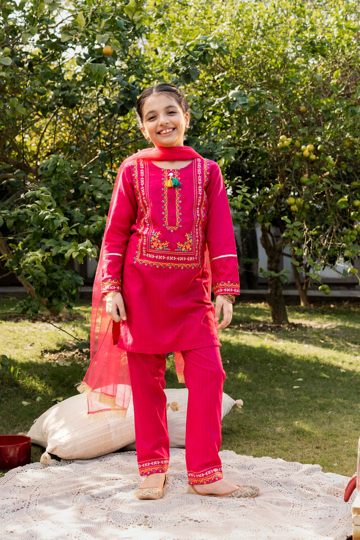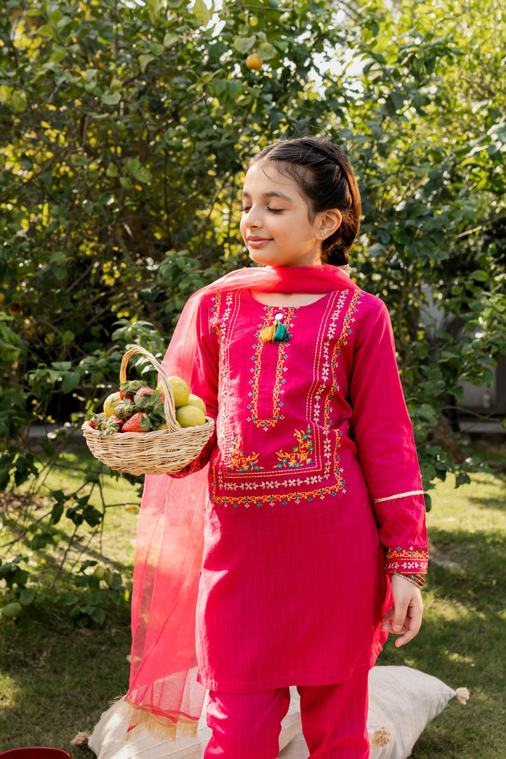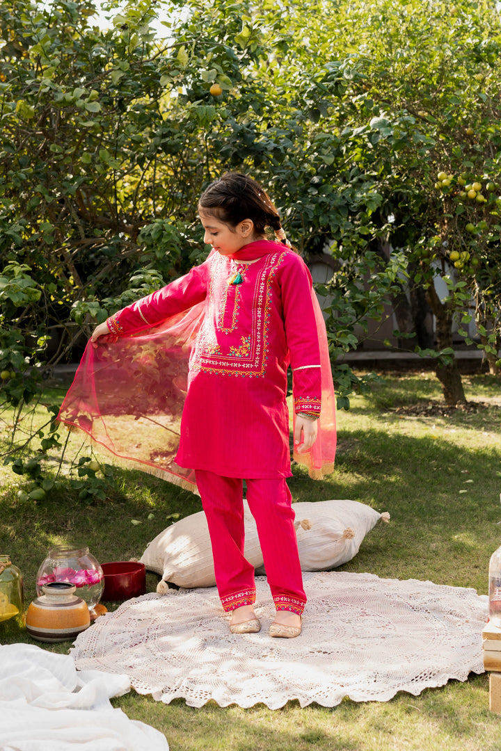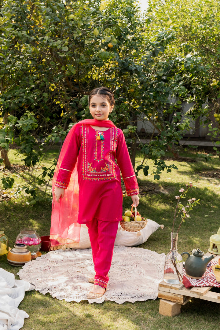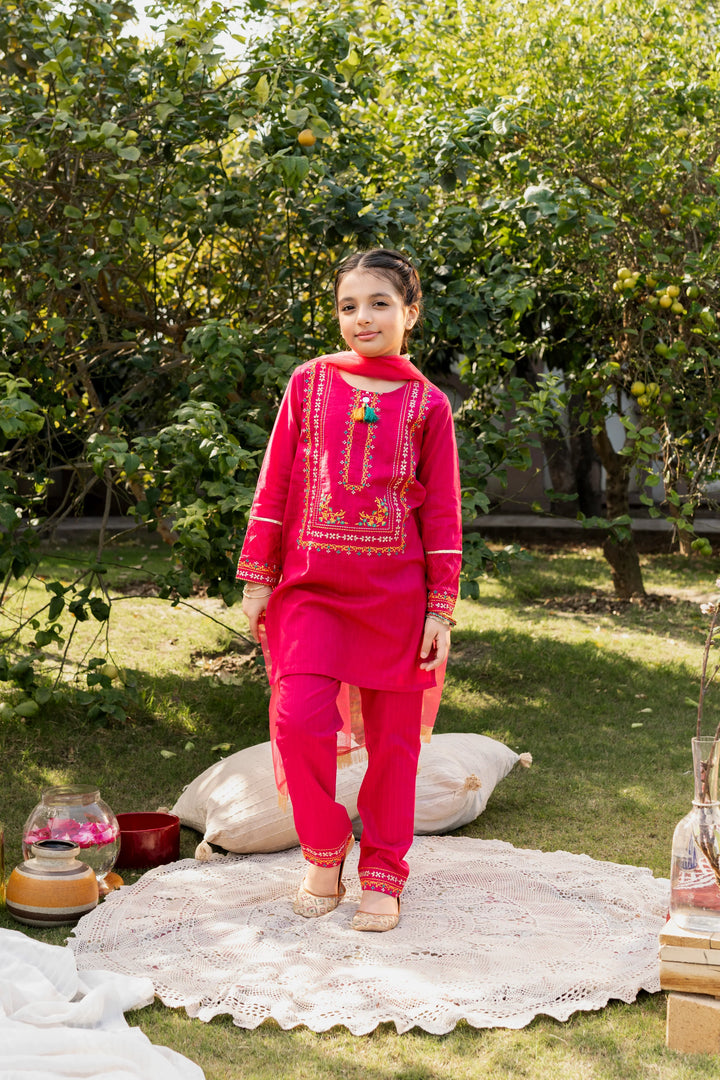 3-Piece Eid Dress for Girls – Pink Embroidered Lawn Outfit