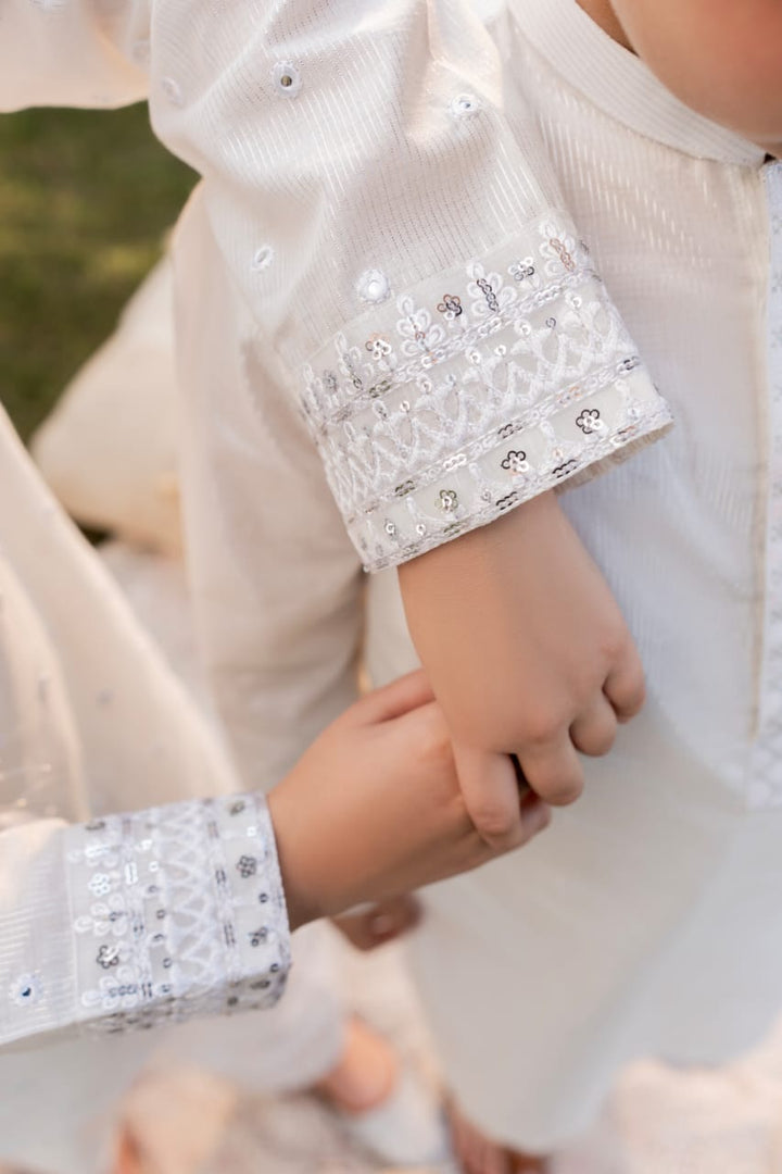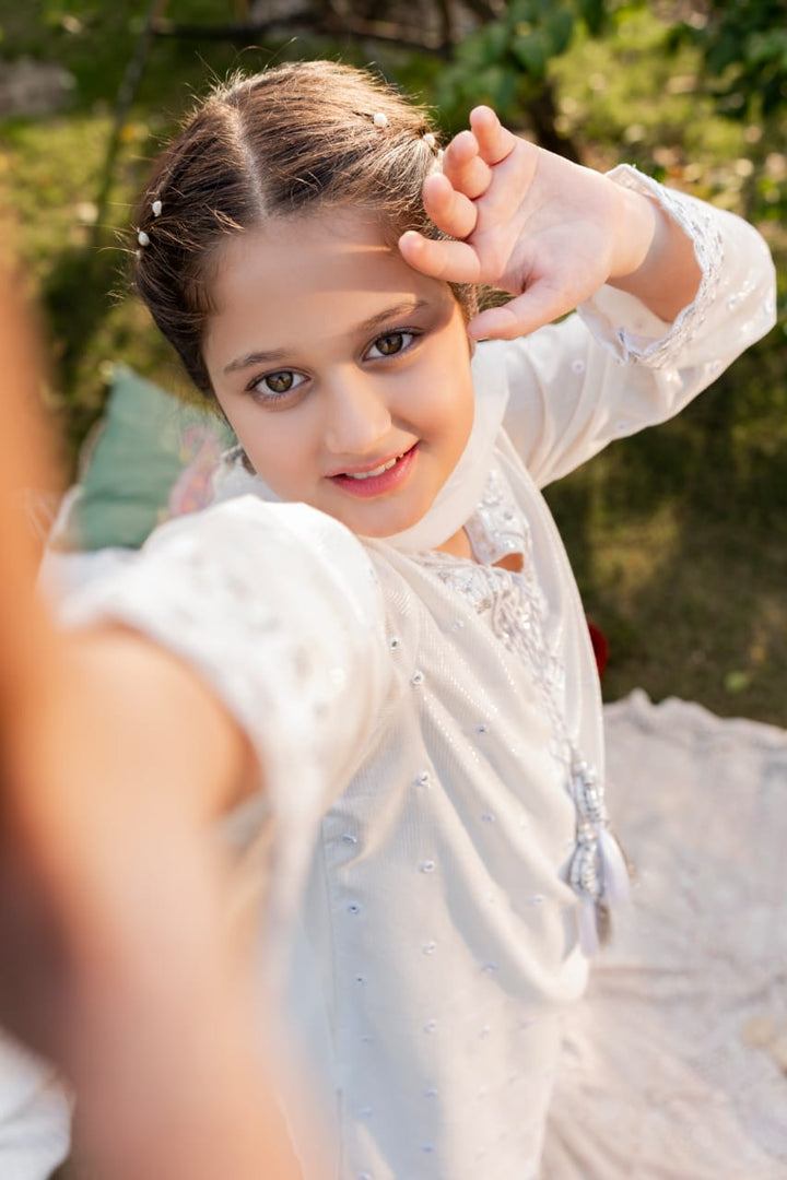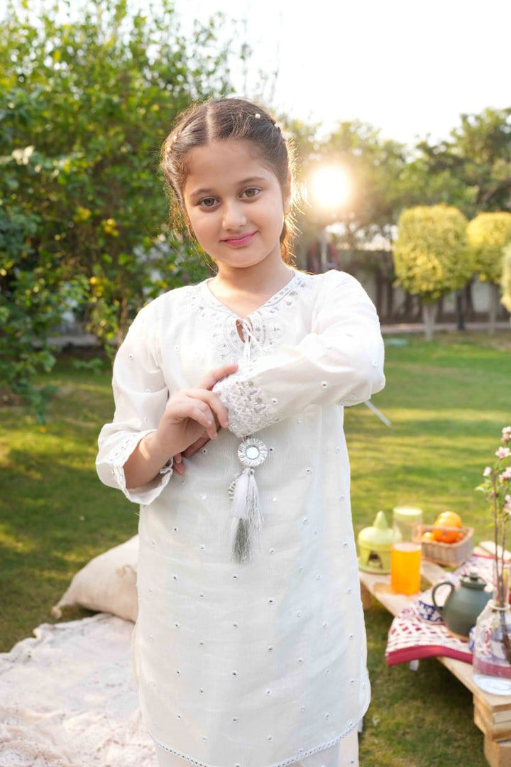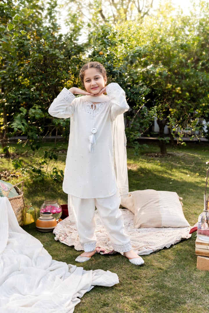 3-Piece Eid Dress for Girls – Sophisticated White Embroidered Outfit