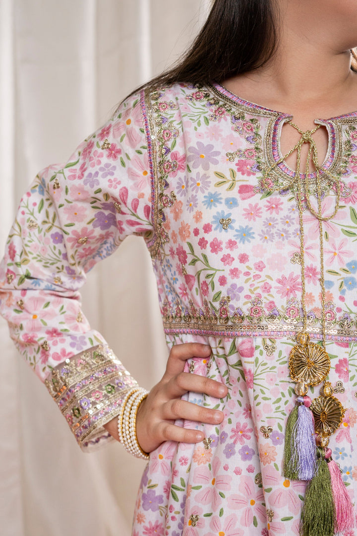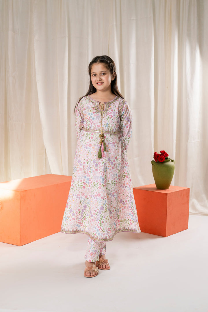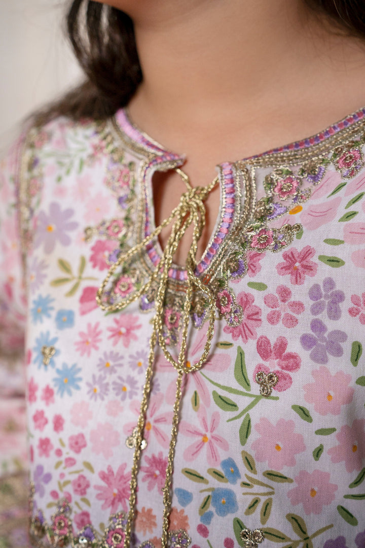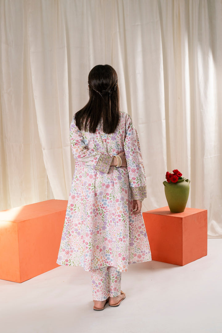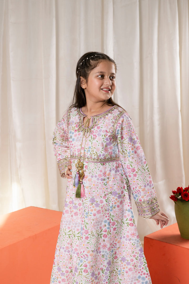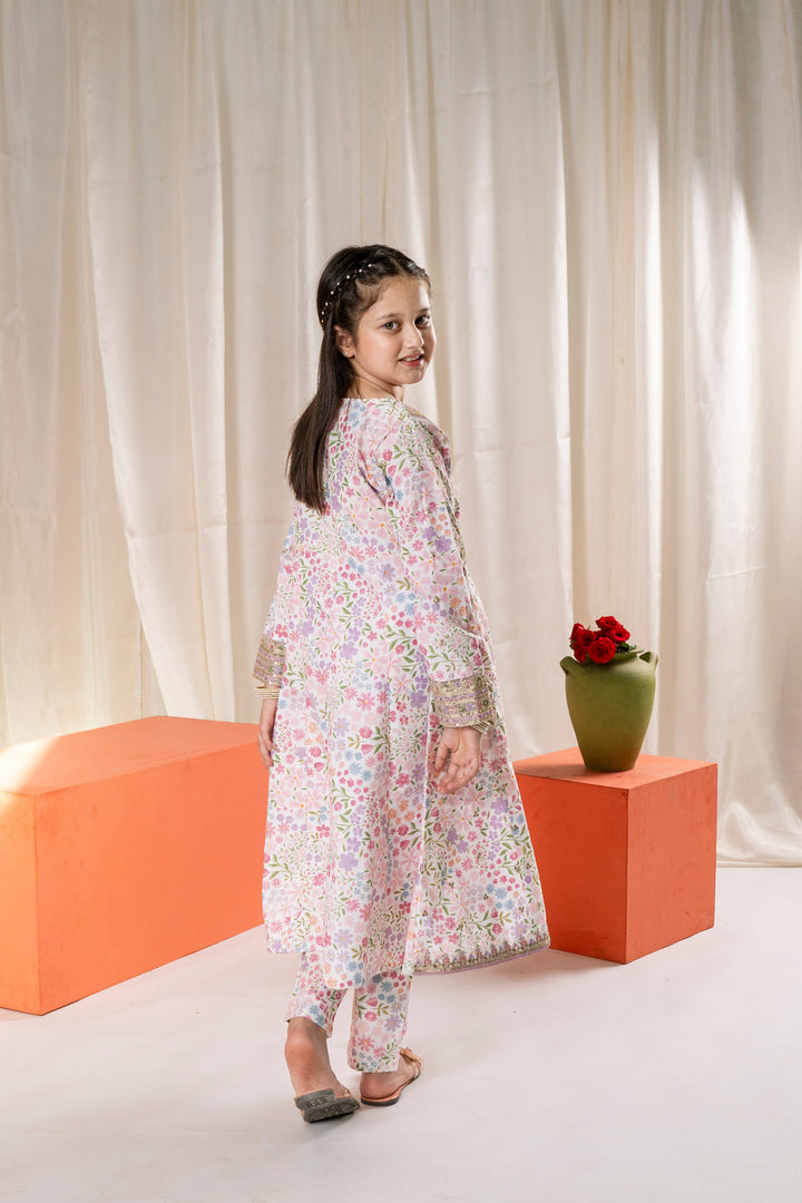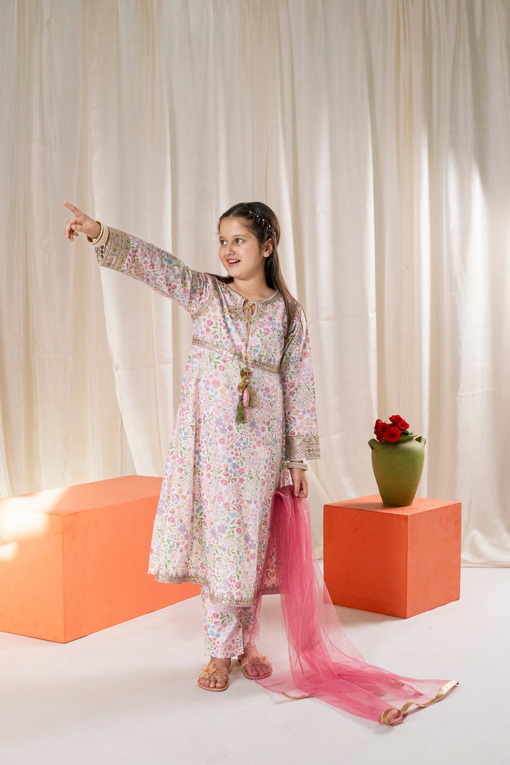 Celebrate the joy of Eid with this stunning white floral 3-piece outfit from our Spring/Summer Eid Collection 2025. This traditional design combines elegance and comfort—perfect for your little girl's festive look.