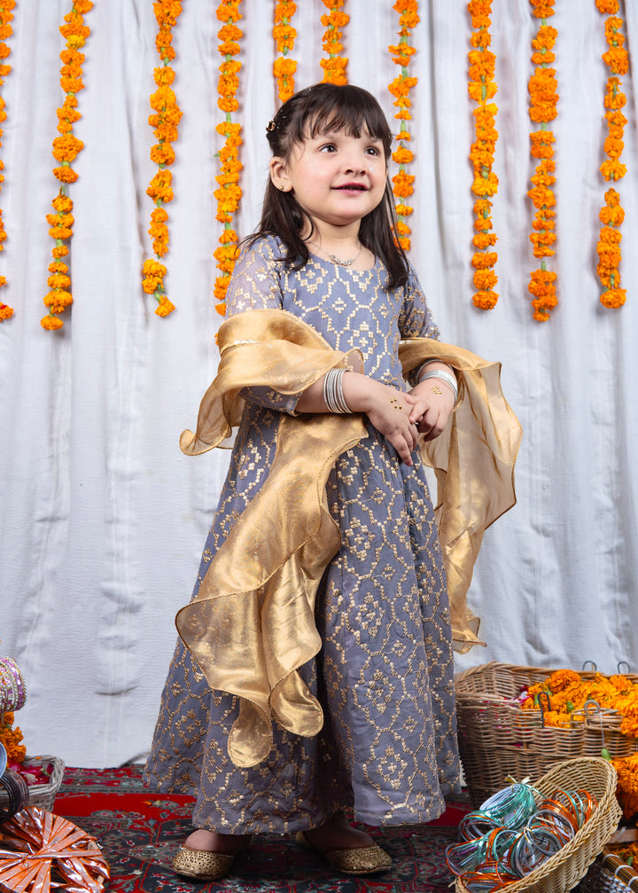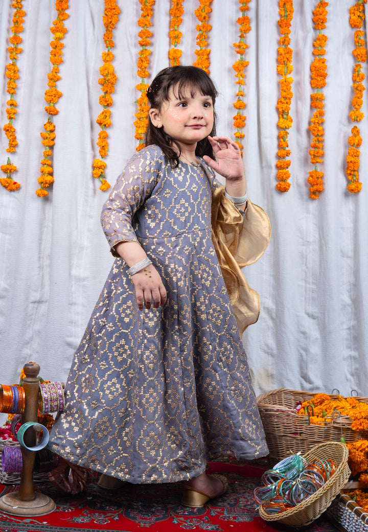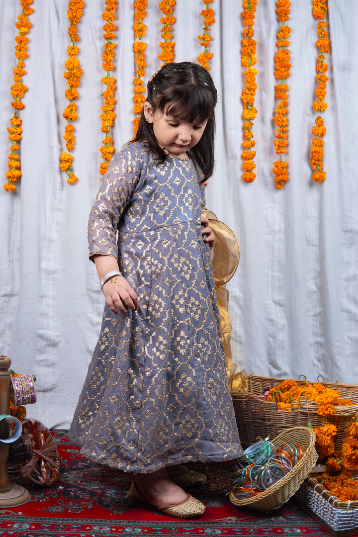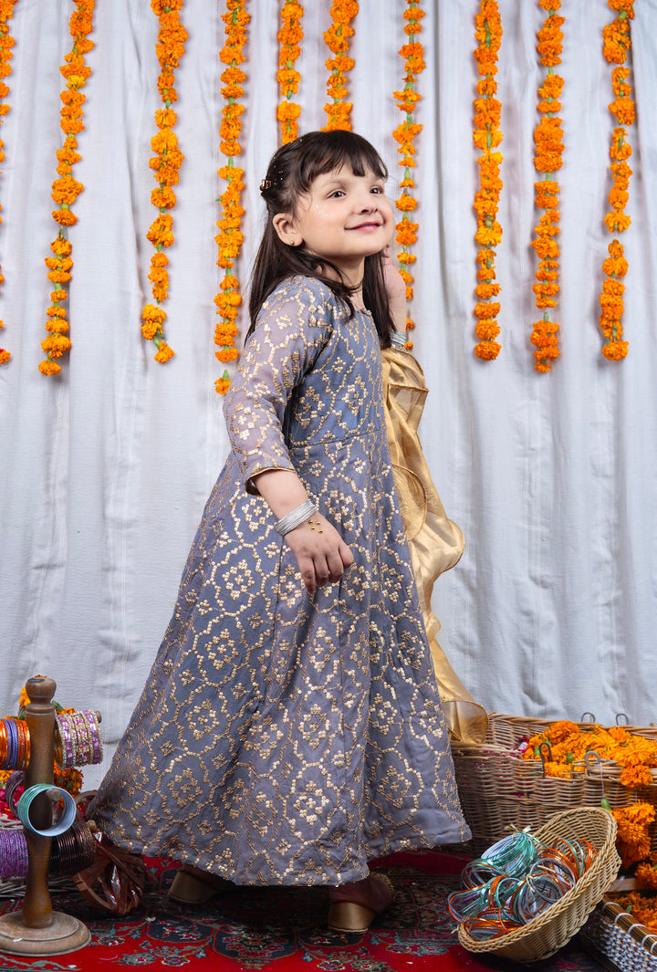 Canvas Kids - Grey Gold Hue Festive Wear Dress For Girls