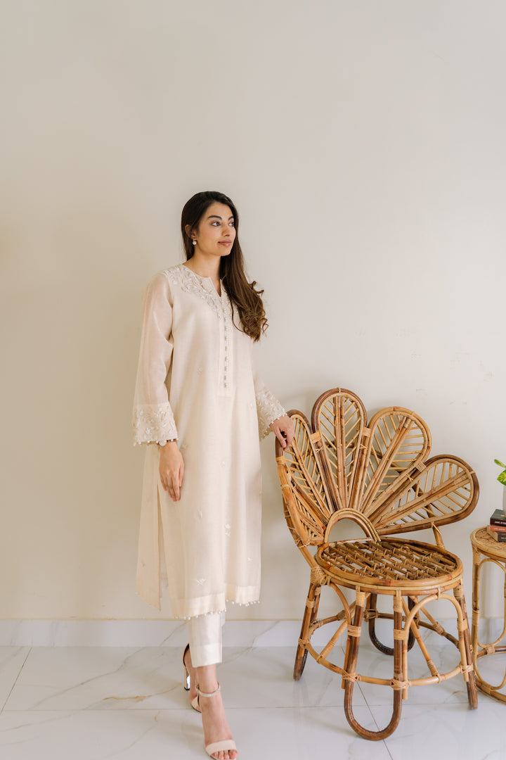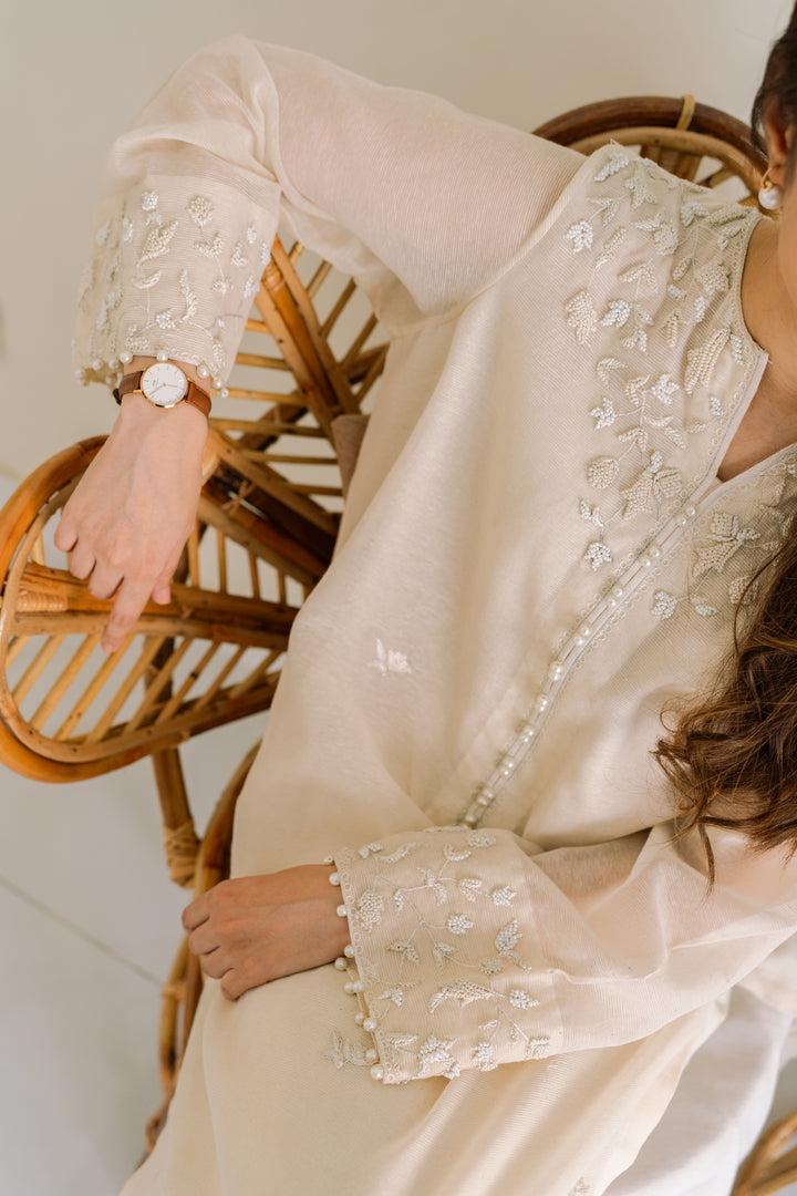 Zehra & Khadija - Pearl 1 PC Hand embroidered french knots on summer cotton karandi