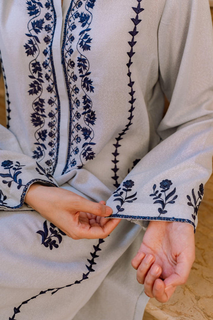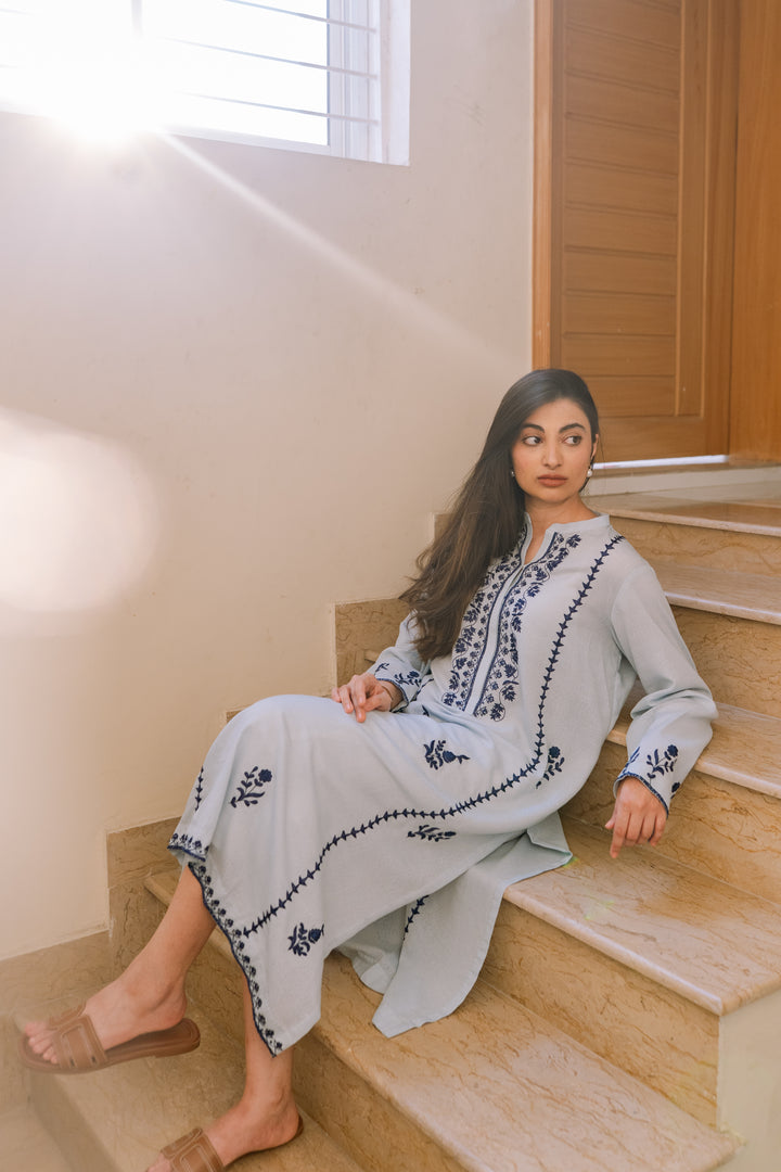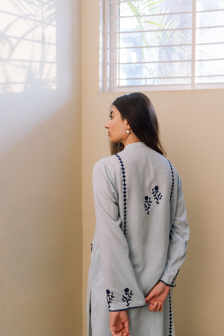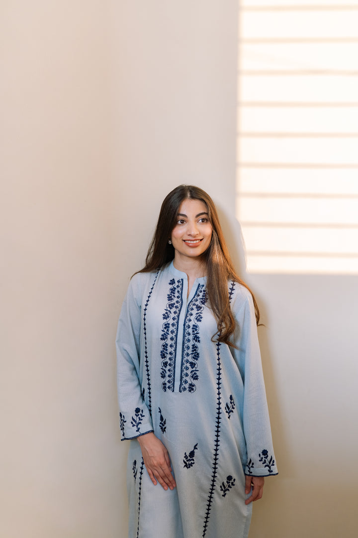 Ice blue lawn karandi kurta