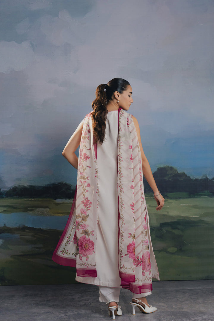 Cloud captures purity in white, accented with delicate pink florals that bring a touch of softness. The straight cut design paired with a breezy dupatta makes it elegant yet comfortable. Ideal for those who want effortless grace in their everyday wear.