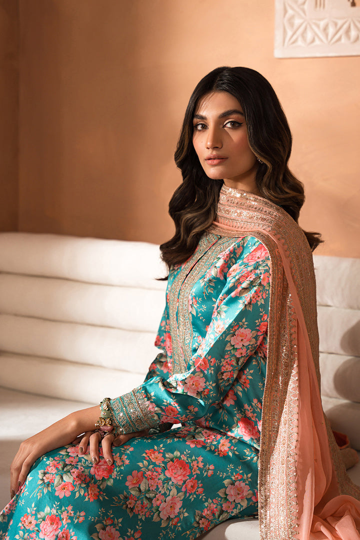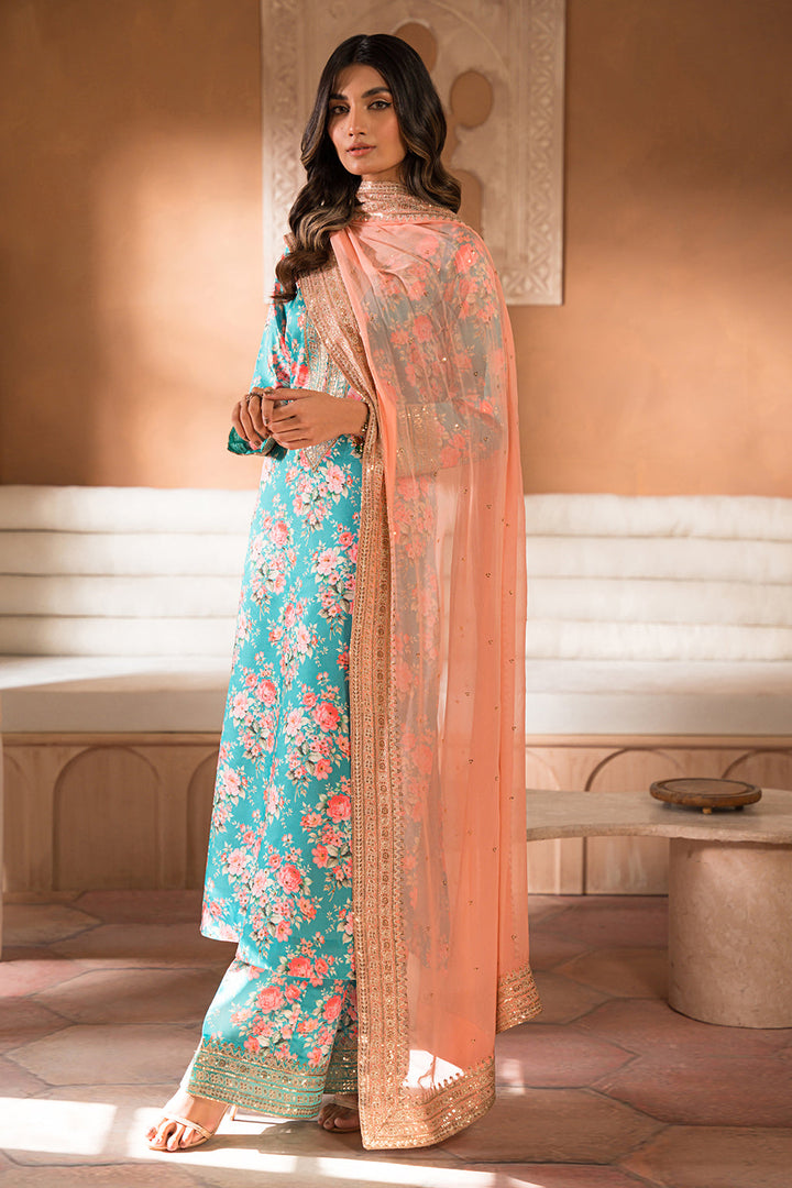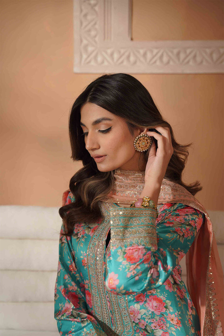 Sheenora - KAIF Stitched Aqua Printed Silk Pakistani Dress