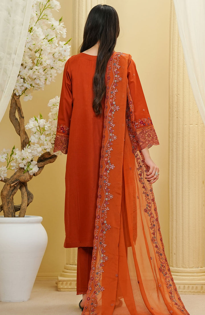 Amna Khadija - La fleur Cotton 3 Piece Orange D-27