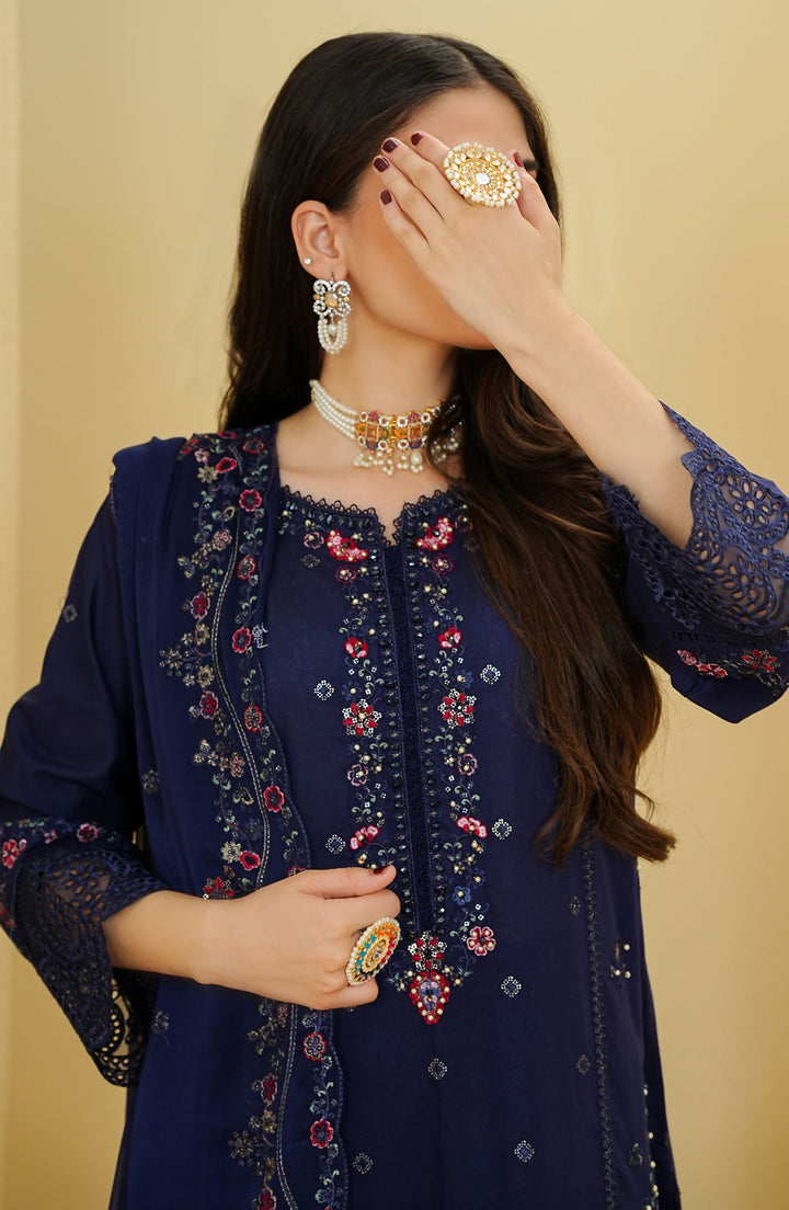 Amna Khadija - La fleur Cotton 3 Piece Navy Blue D-29