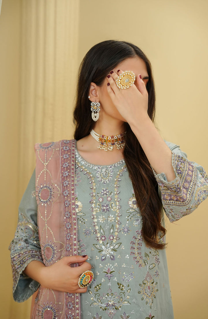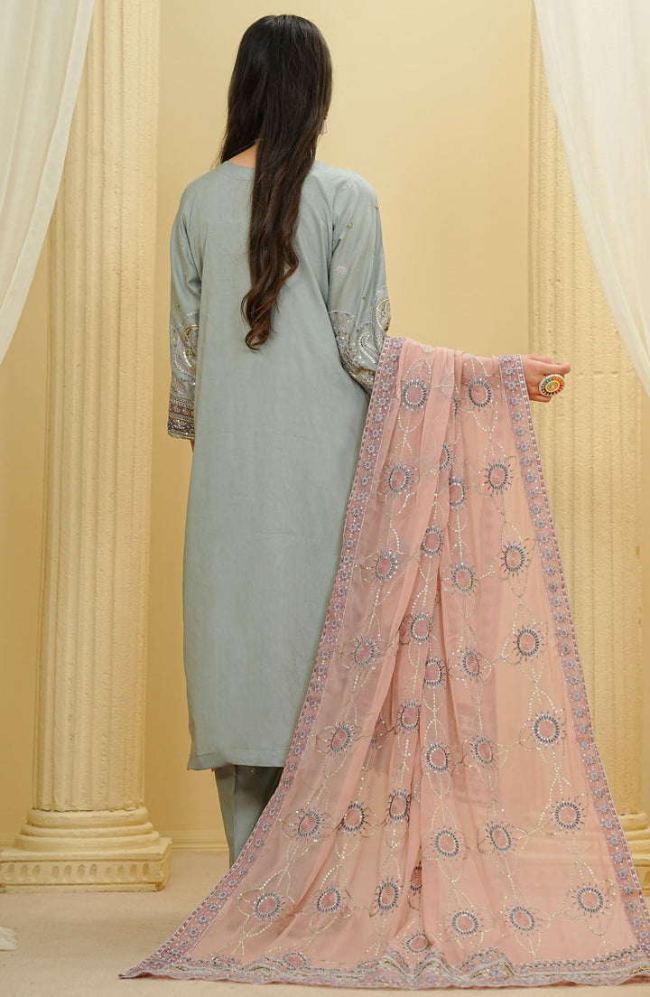 Amna Khadija - La fleur Cotton 3 Piece Grey D-28