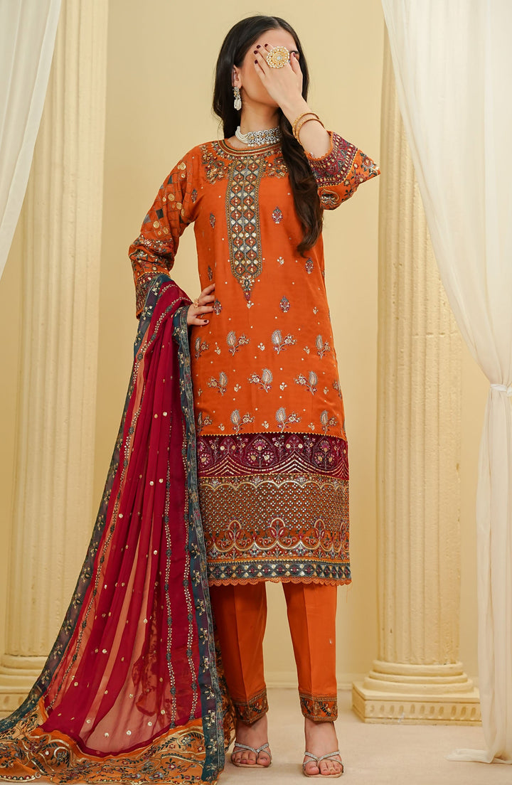 Amna Khadija - La fleur Cotton 3 Piece Orange D-32