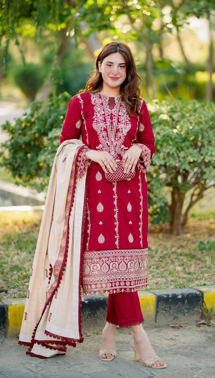 Libaas By Nawaz Fabrics - 3 Piece Unstitched 03 Maroon