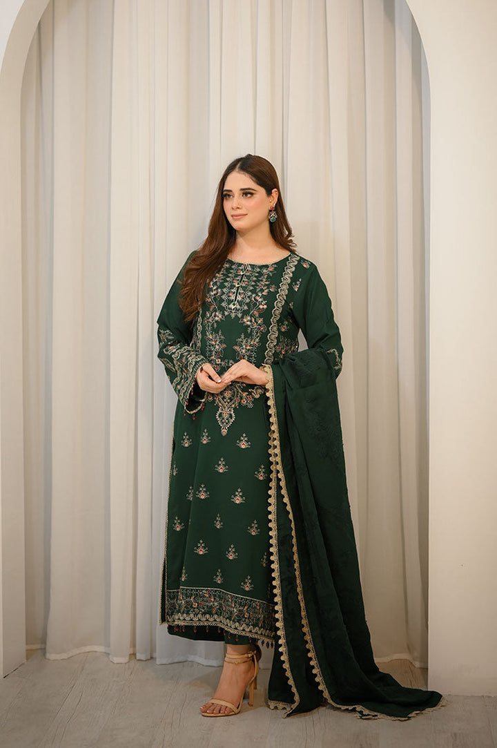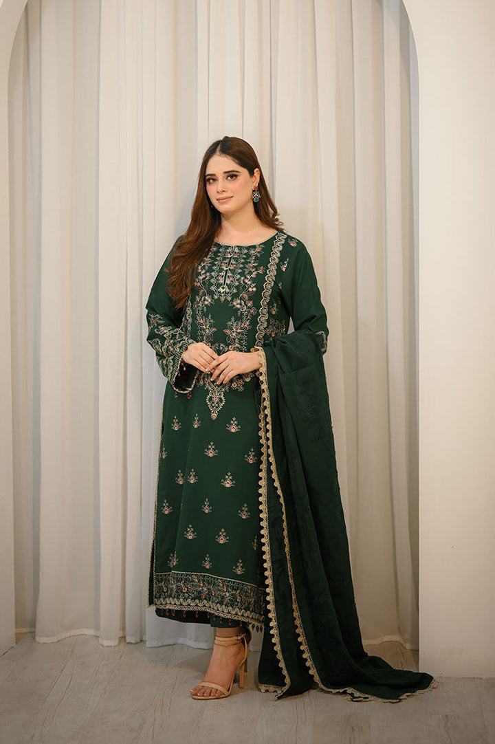 Libaas By Nawaz Fabrics - 3 Pice LNF-68-Bottle Green