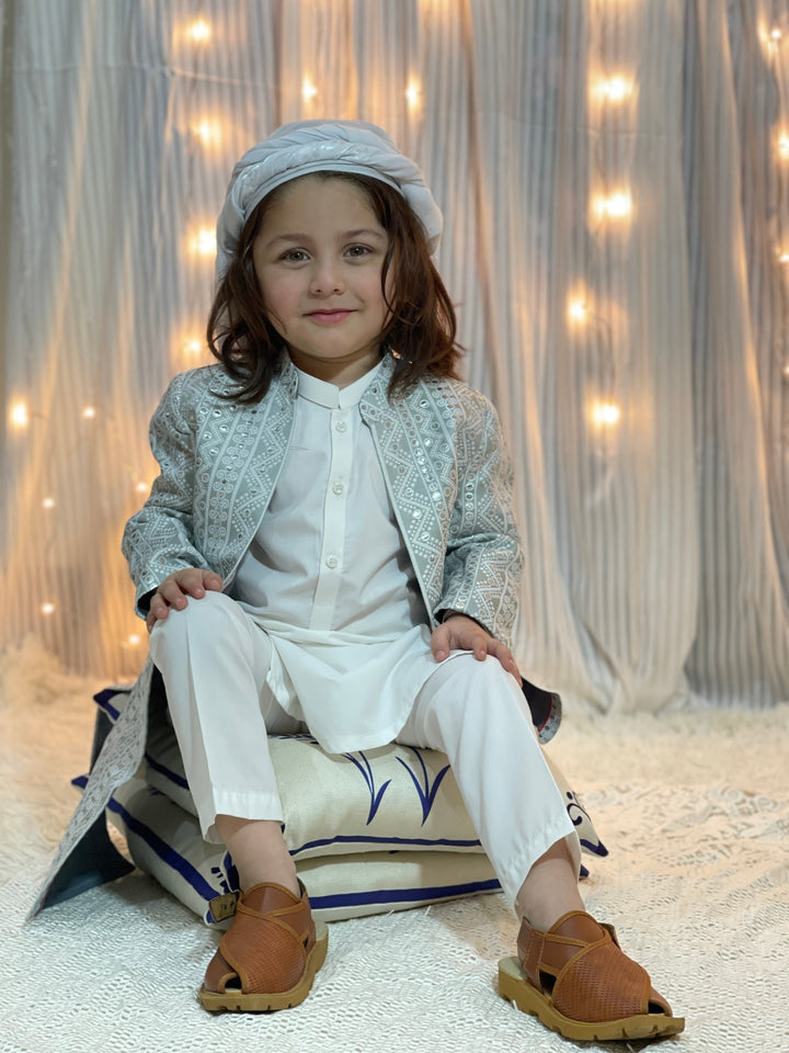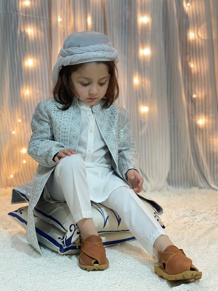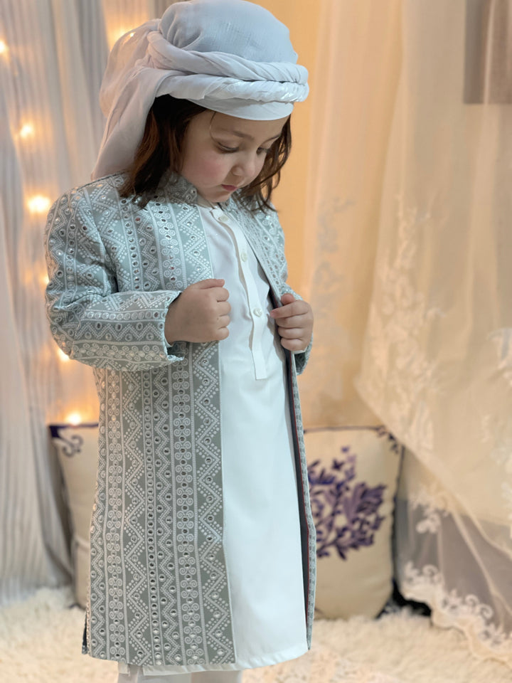 Hassanjee - Grey Long Open Sherwani S25