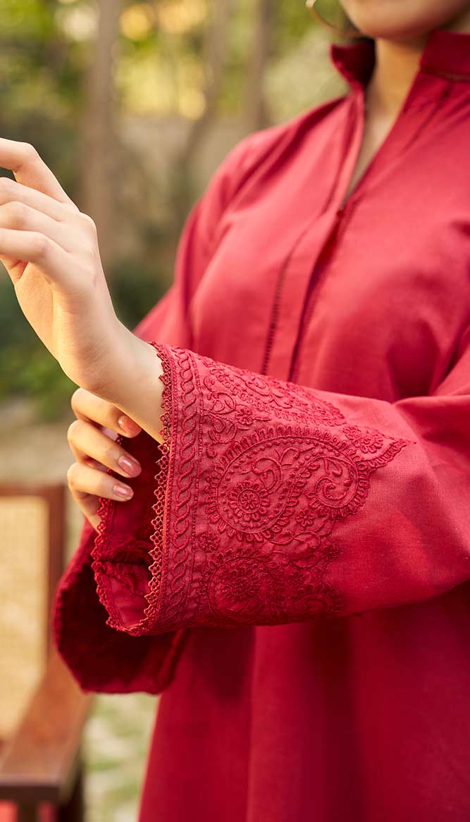 “Lutf” is ideal for the winter months since it exudes warmth and richness. It perfectly combines history and style, with elaborate patchwork highlighting the hem and neckline. Its deep color adds to its adaptability and makes it perfect for day-to-night changes.