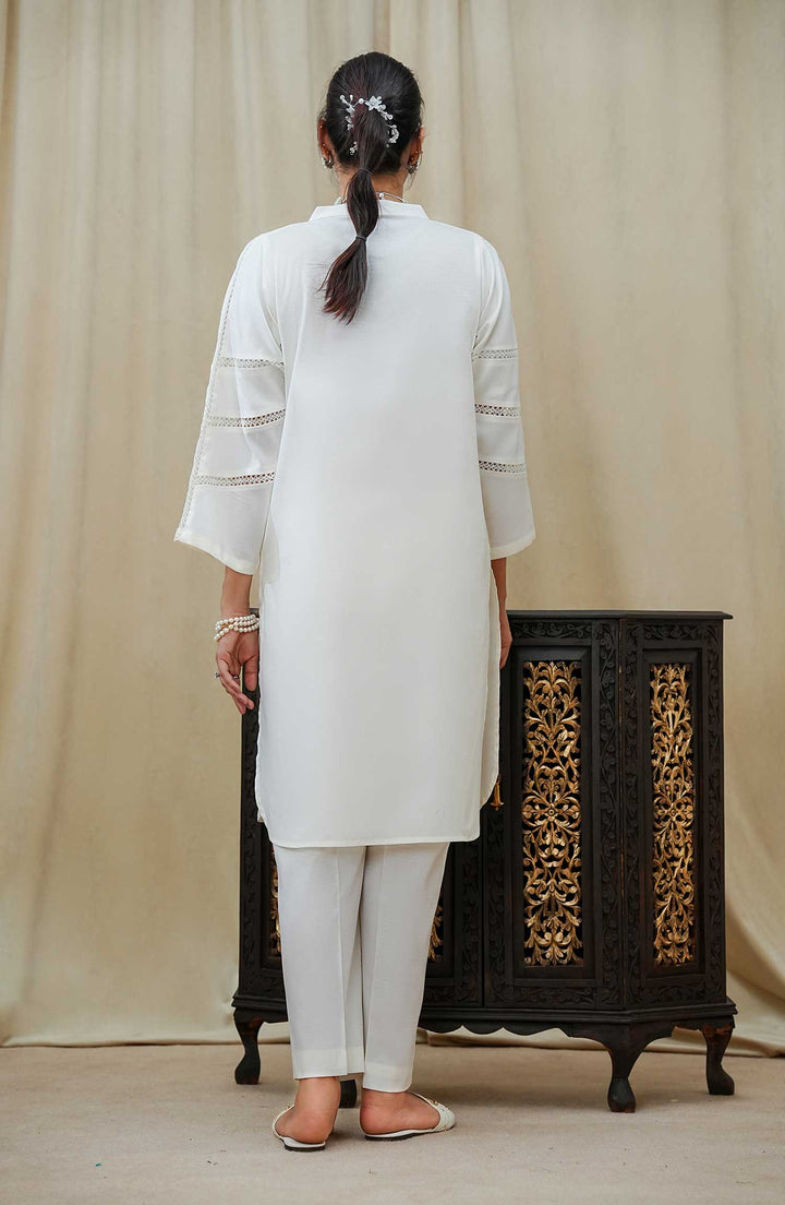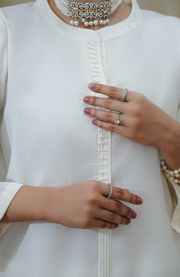 -Stitched Premium Jacquard shirt with laces and pleates