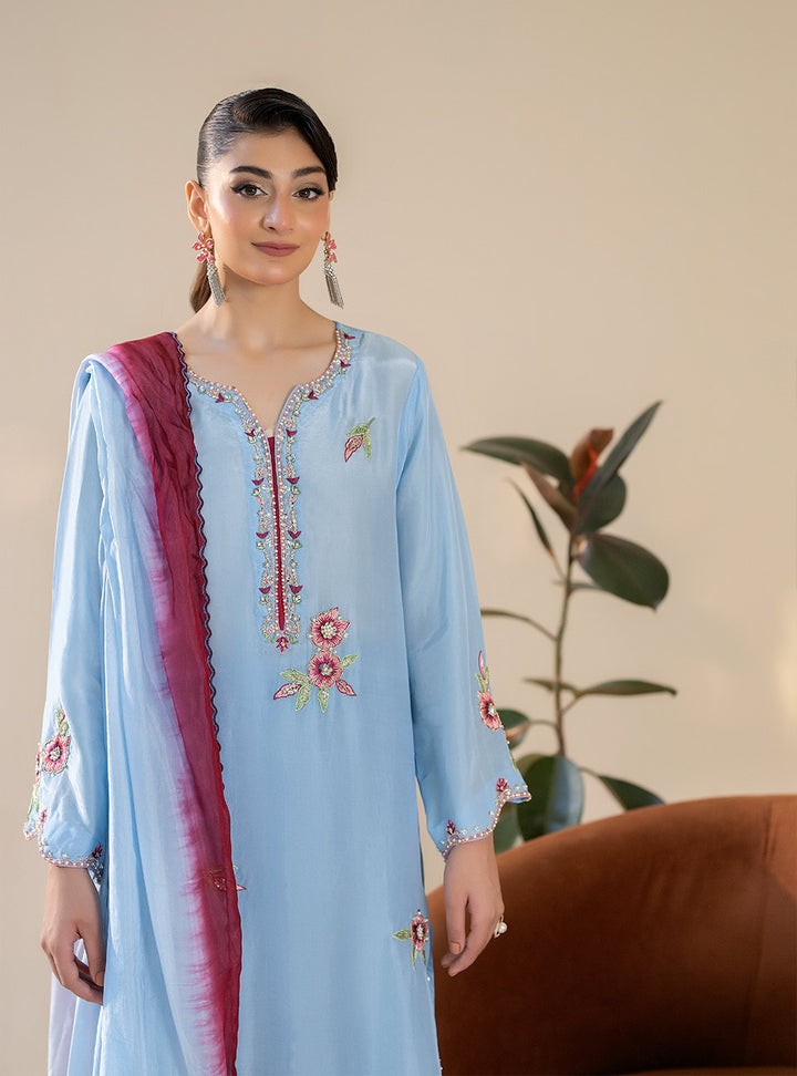 Mahnoor Azher - Aiza Stitched Sky Blue Hand Worked Resham and Tilla Embroidery