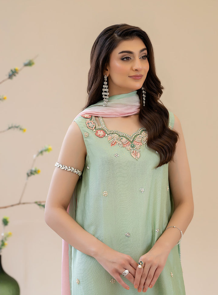 Mahnoor Azher - Mint Dewdrop Stitched Resham and Tilla work