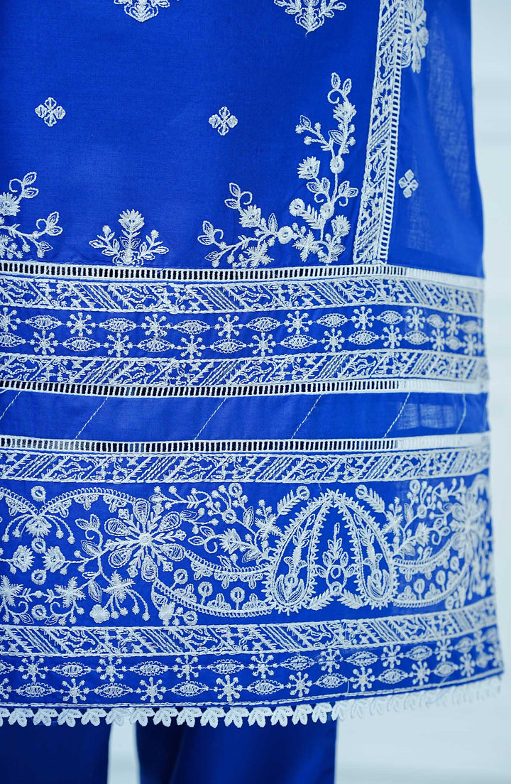 Exclusive Embroidered cambric cotton stitched shirt with lacework
