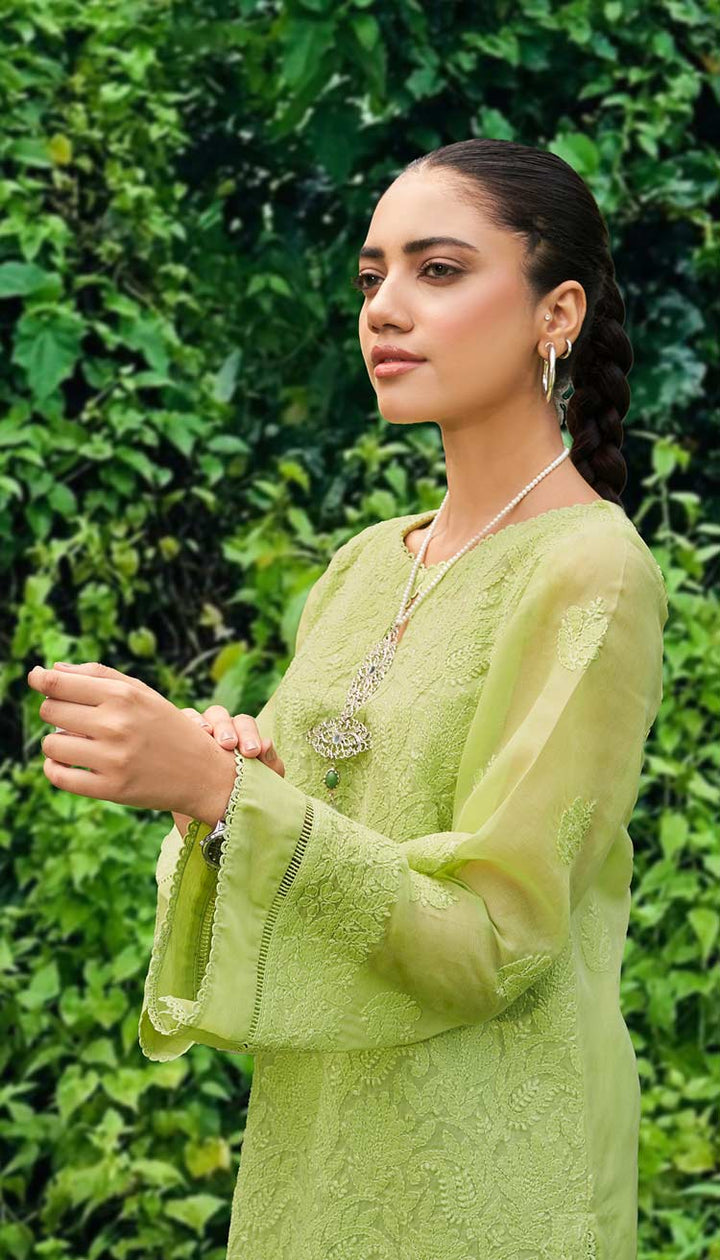 With our Indian Chikankari article, “Minty Fresh” you can enter a world where beauty and tradition coexist. Crafted with the finest material, it will add grace to your wardrobe. A hint of refinement is added to every ensemble by the superb detailing, which contrasts with the comfortable, and breathable fabric.