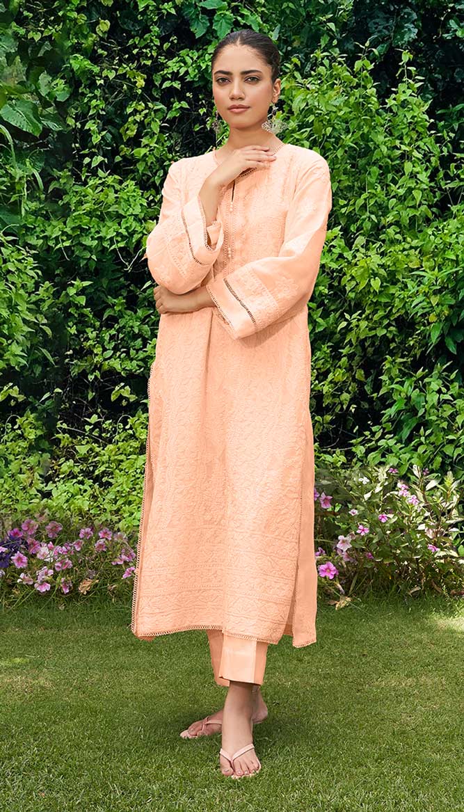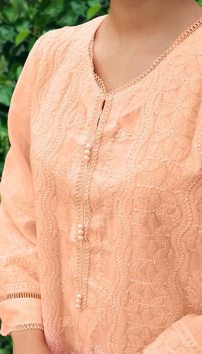 Disclaimer: Please note that the Indian chikankari design may differ from the image due to its unique handcrafted nature, where each design is one-of-a-kind and can't be mass-produced. Hence showcasing the beauty of this old-age Indian craft. However, the outfit's stitching details and color will match the image.