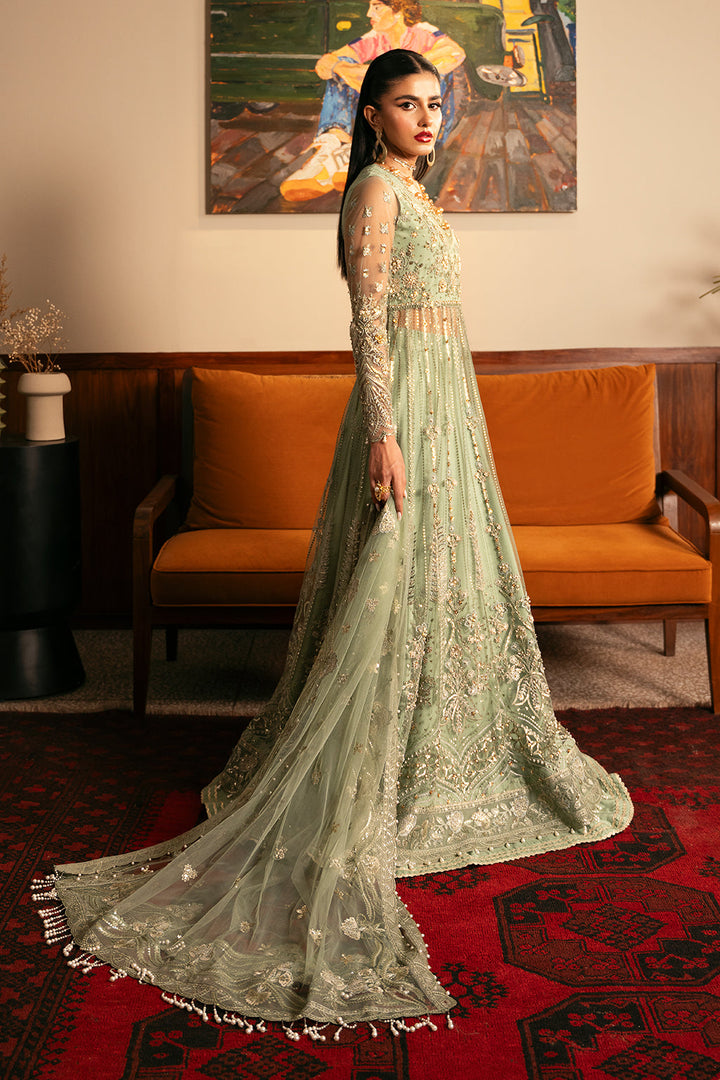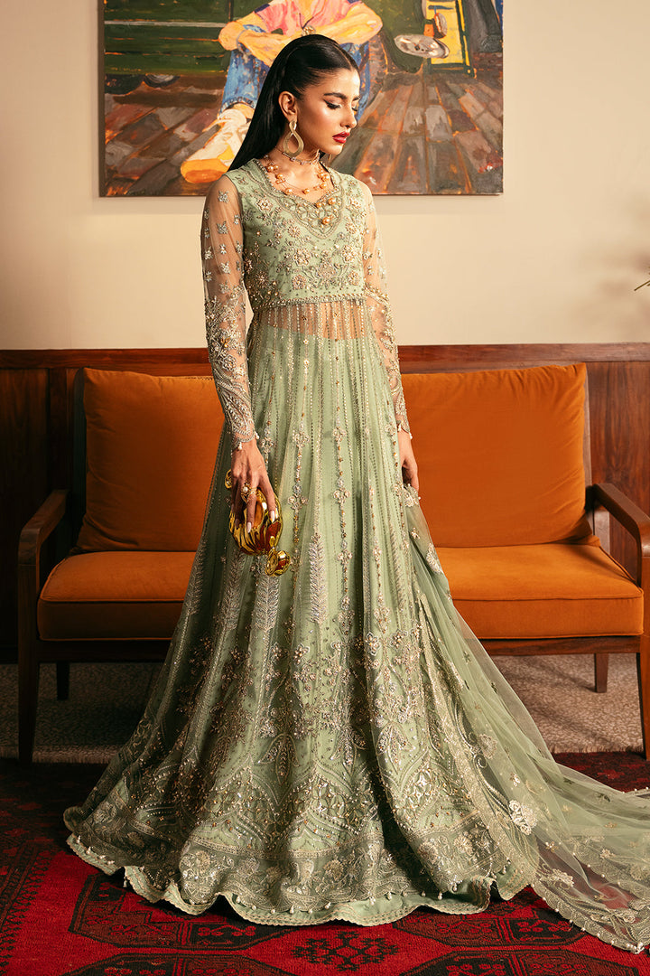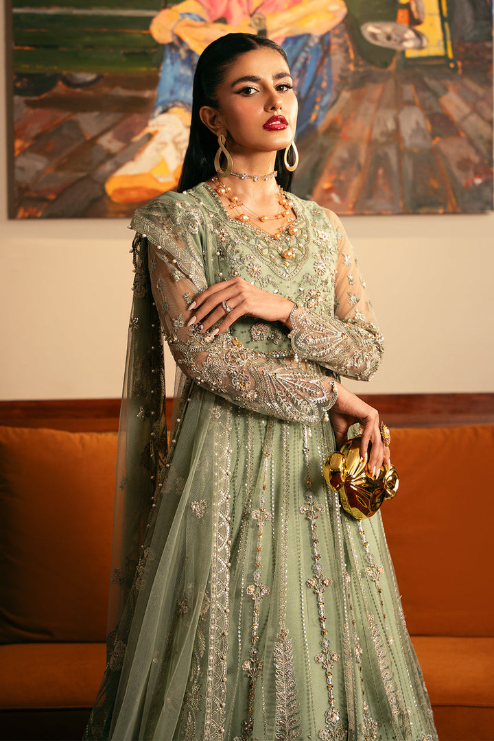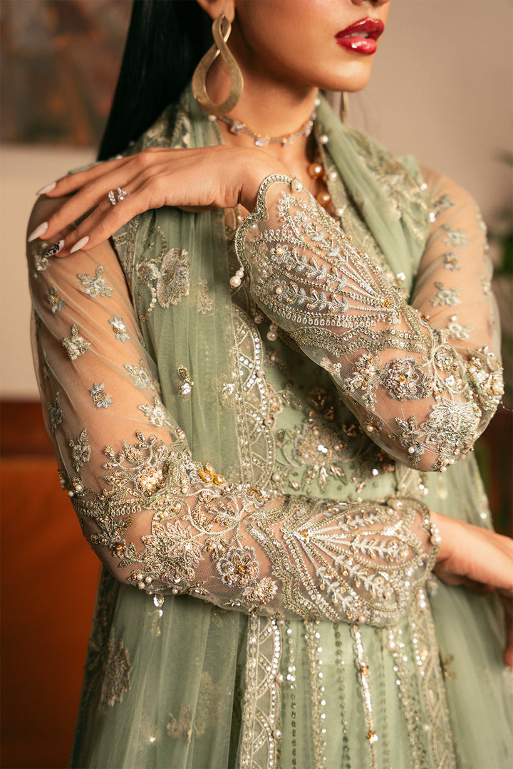Sheenora - Monarch Unstitched/Stitched Sage Green Embroidered Net Pakistani Dress