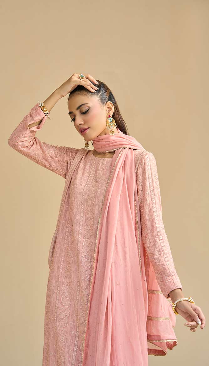 3 piece set includes a Shirt, Trousers, and Dupatta.