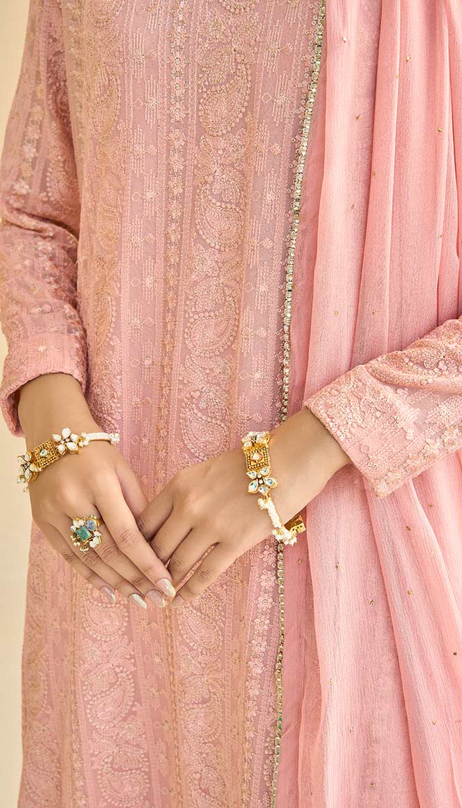 “Myra” is a timeless investment in style. This outfit stands out for their meticulous attention to detail. Dupatta has unique laces on it. The front of the shirt has fine work on it