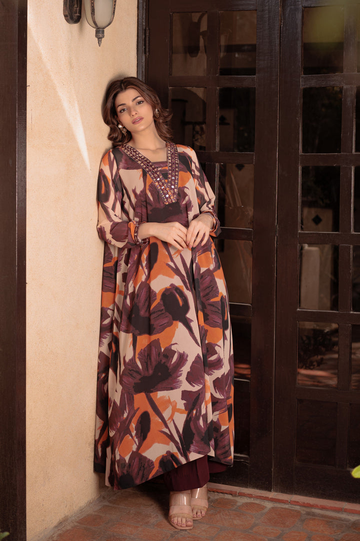 Designed for effortless elegance, this long kaftan dress features a relaxed yet refined silhouette, meticulously crafted from soft crepe. Adorned with intricate multishade geometric embroidery, it showcases a perfect balance of artisanal craftsmanship and modern sophistication. Comes with the Full lining. This timeless piece exudes grace and luxury.