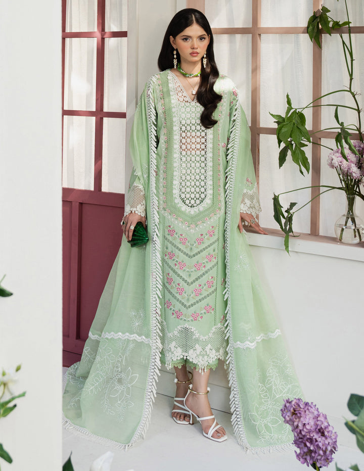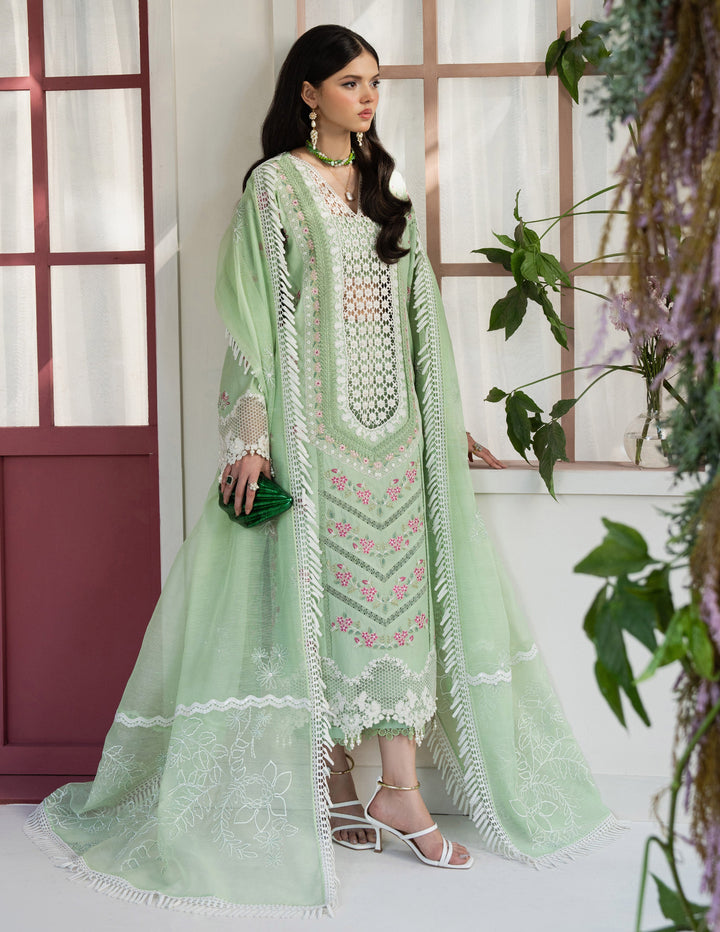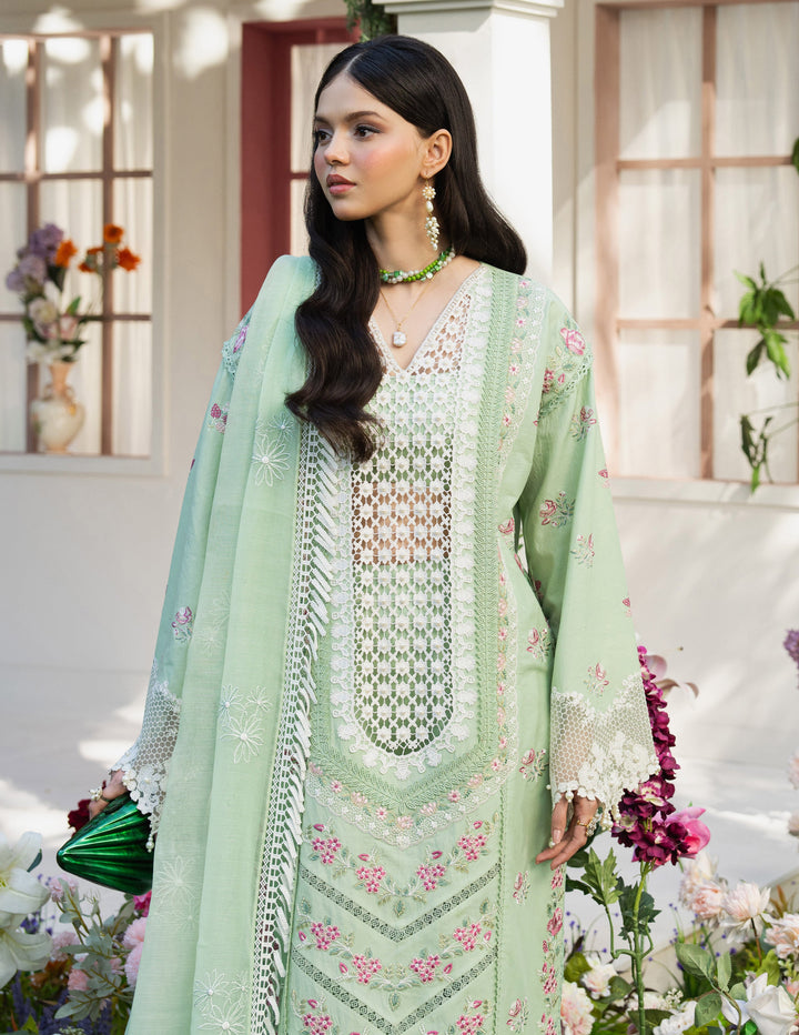 Embrace elegance with our Mint Green Lawn Suit this beautifully crafted ensemble features a refreshing mint green base adorned with delicate floral embroidery, exuding a soft and graceful charm for eid look.