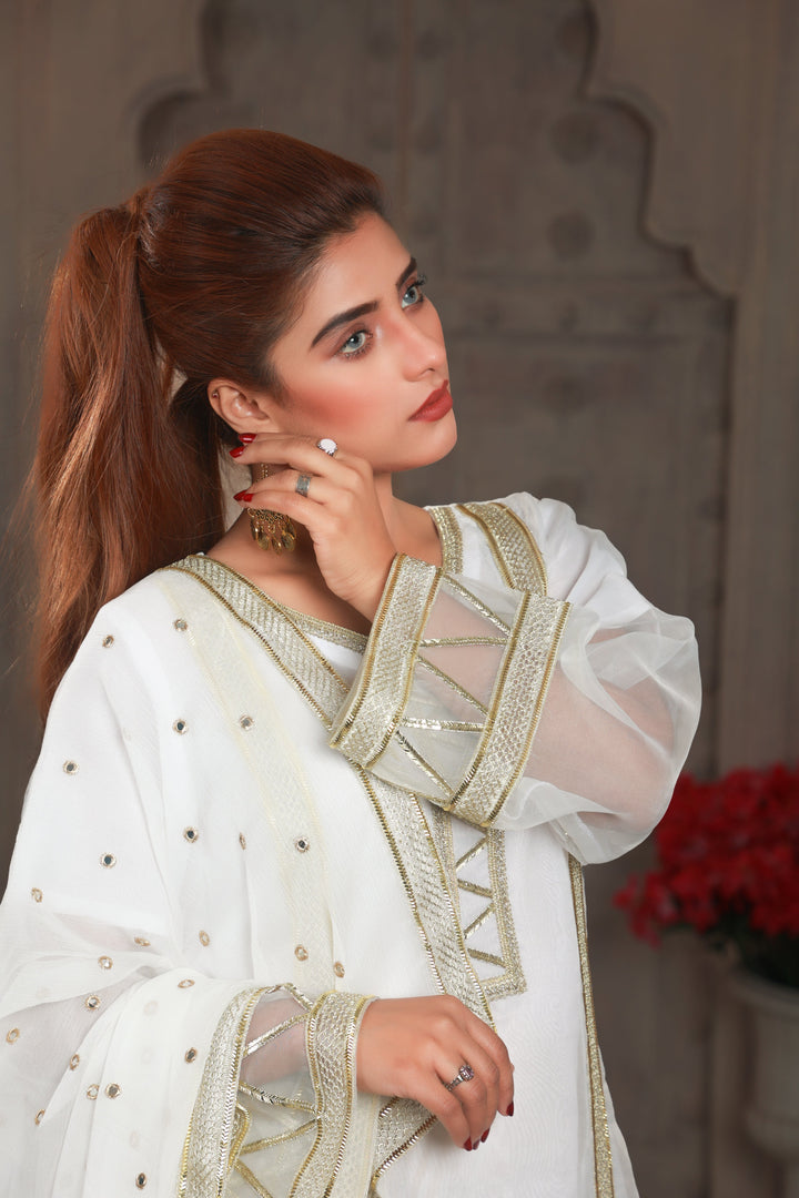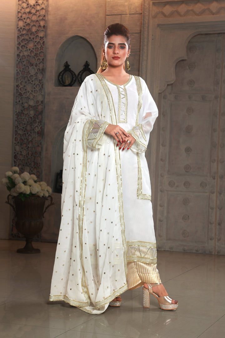 Introducing ' Chandni ', our stunning white 'Gotta Work' dress paired with a matching white dupatta. This outfit exudes simplicity, sophistication, and a touch of understated glamour. Perfect for a formal work event or a special occasion, 'Chandni' is sure to make you shine like the moonlit night sky."