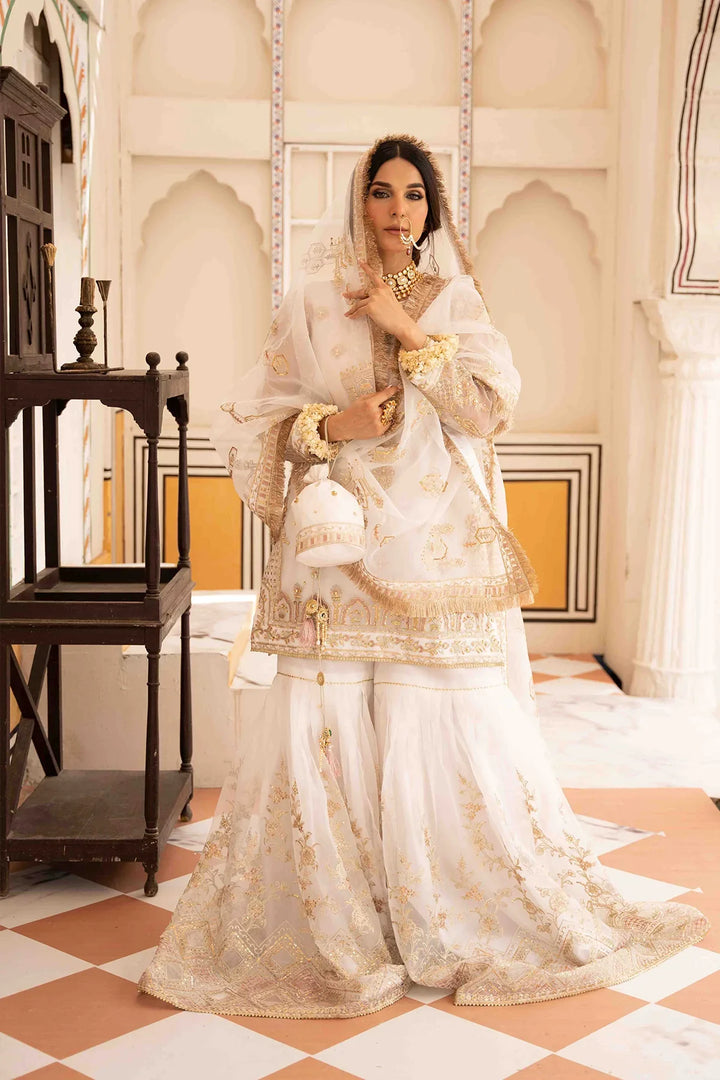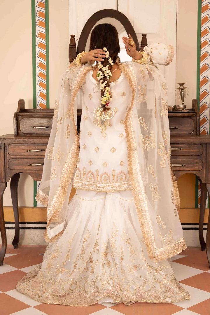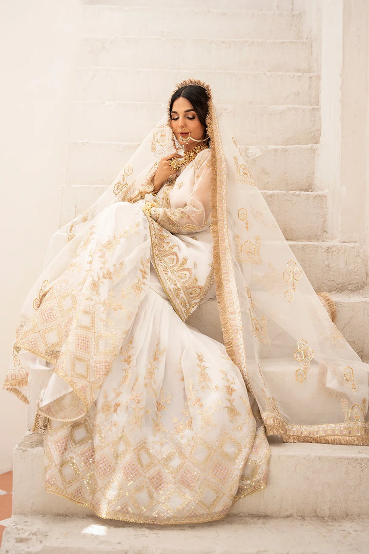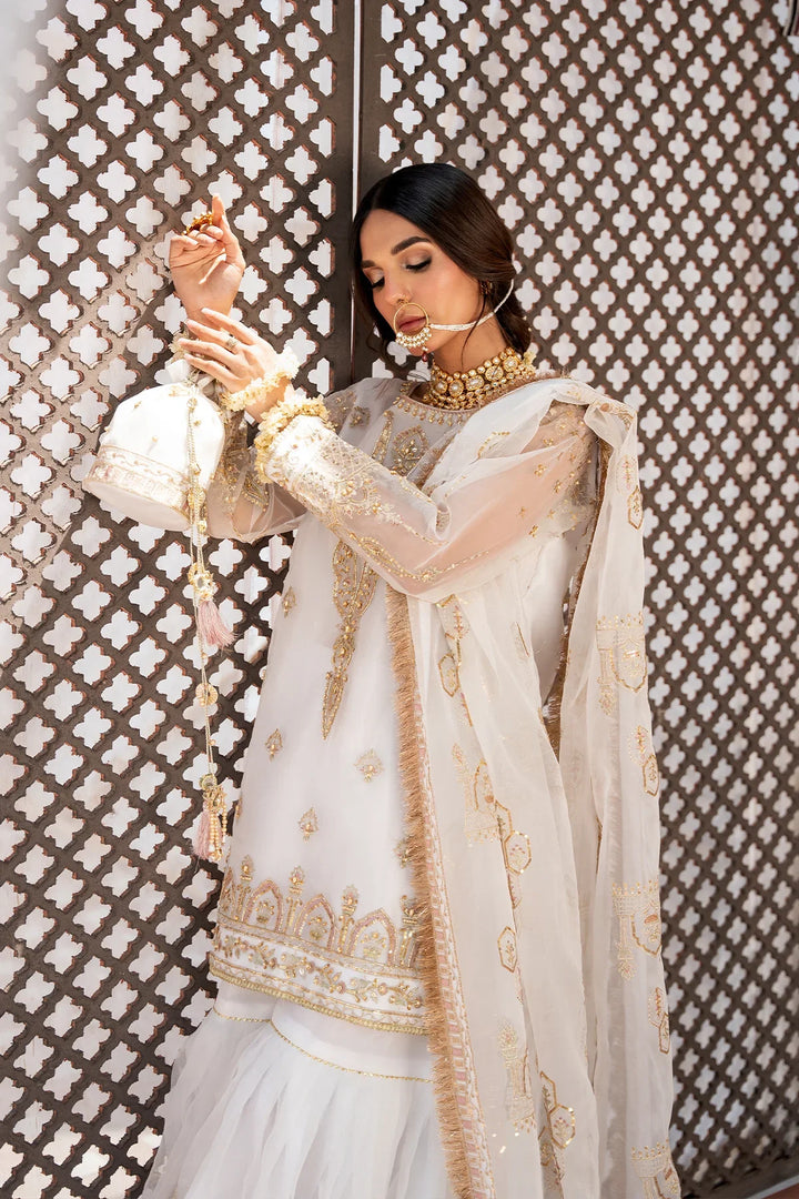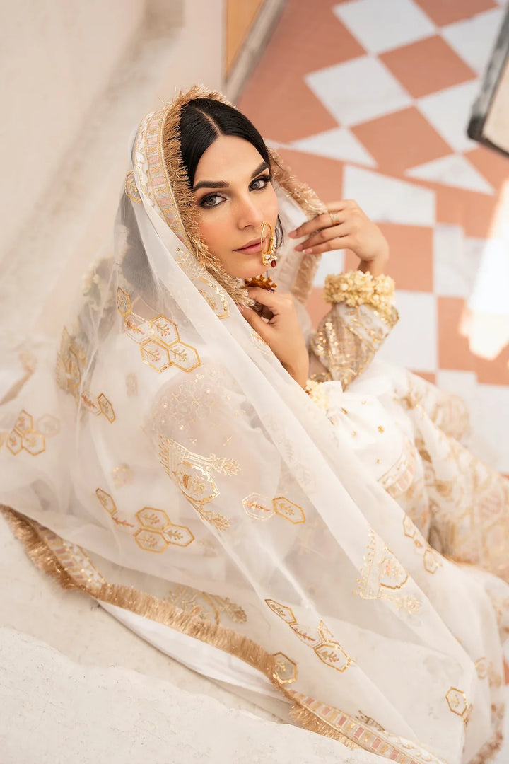 Introducing CHANDANI - the ultimate luxury formal dress, perfect for nikkah ceremonies. Featuring exquisite white embroidery and hand embellishments, this dress exudes elegance and sophistication. Elevate your special day with CHANDANI.