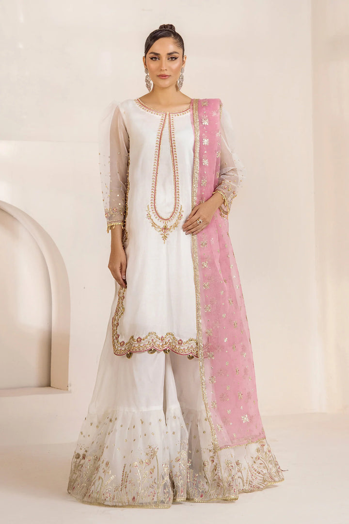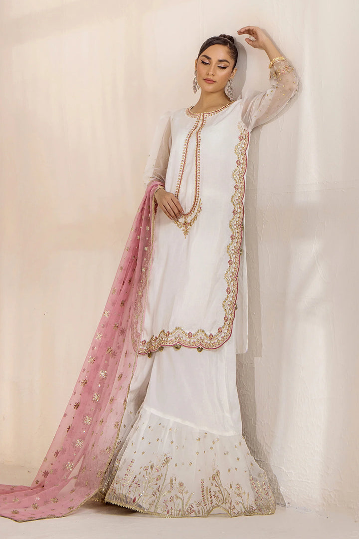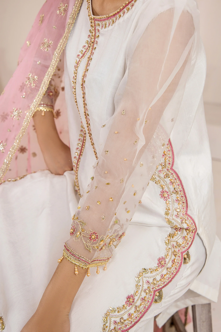 Introducing Afreen, the ultimate luxury pret dress. Made from raw silk and adorned with intricate hand adda work and thread embroidery, Afreen is a must-have for every fashion-forward individual. Elevate your style with this statement piece and stand out from the crowd with Afreen.