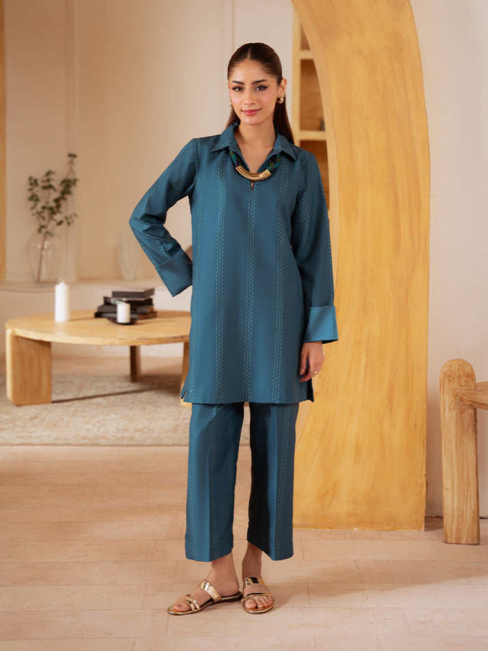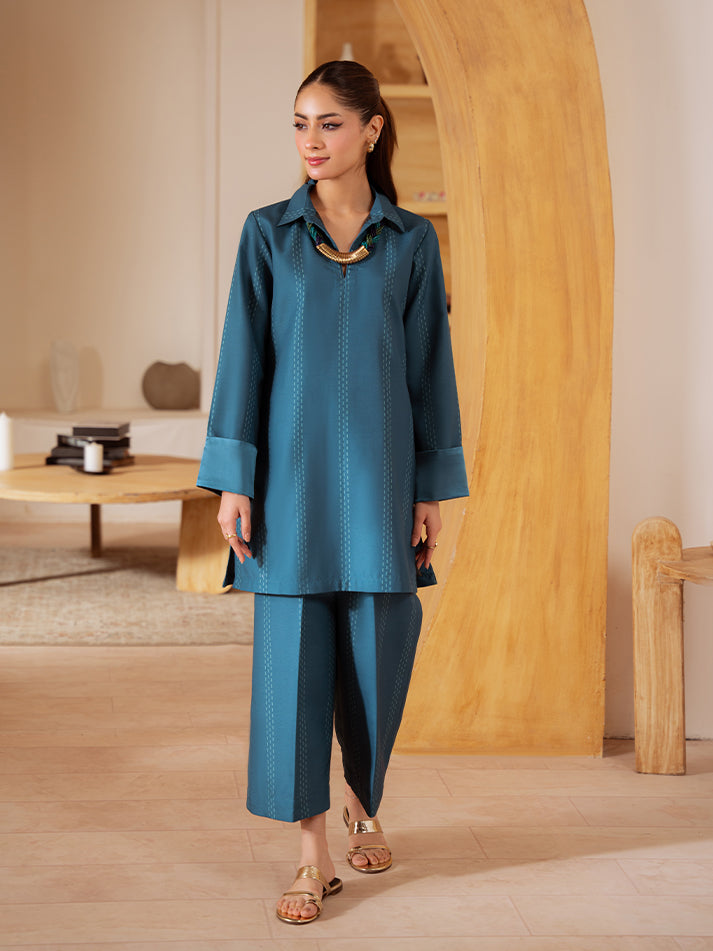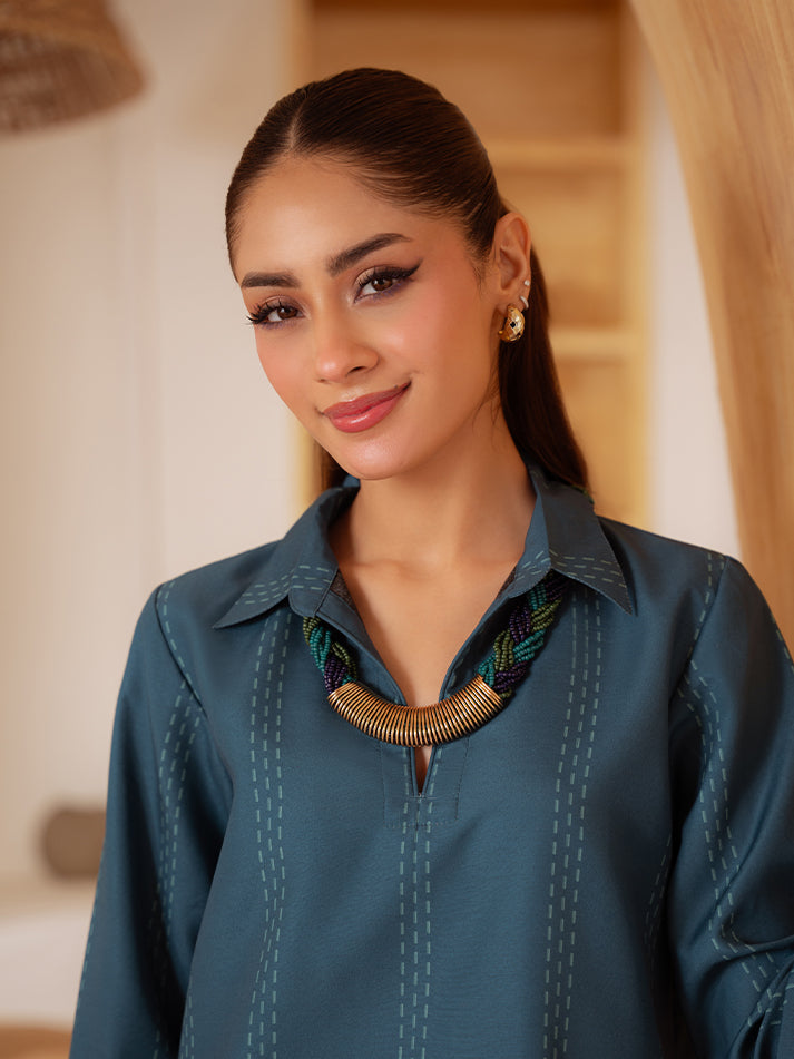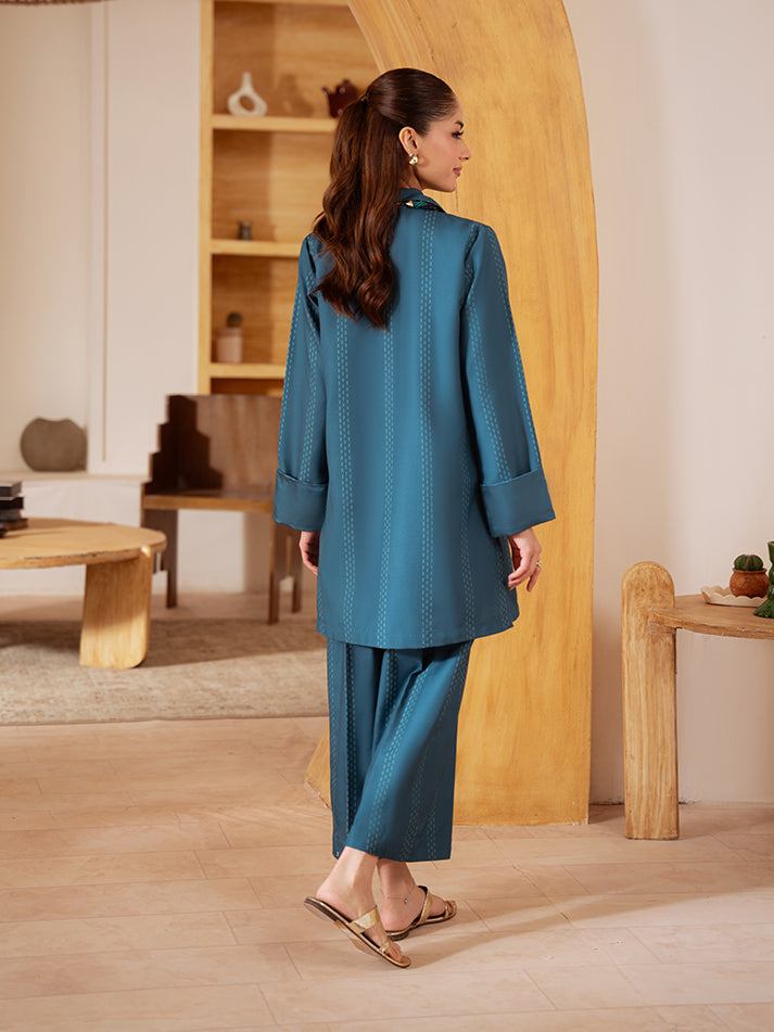 Ocean Drift is a chic two-piece set crafted from soft poly lawn in a solid Moroccan blue base. Defined by its minimalistic elegance, this ensemble captures timeless sophistication with its clean design and refined finish. A versatile outfit that transitions seamlessly from day to evening with effortless grace.