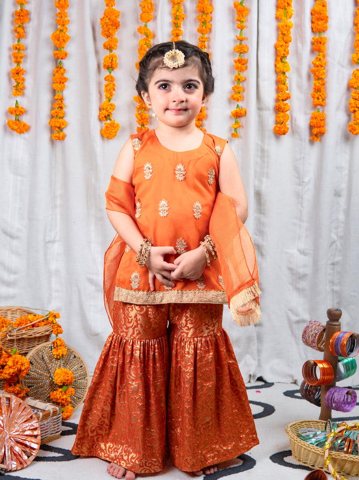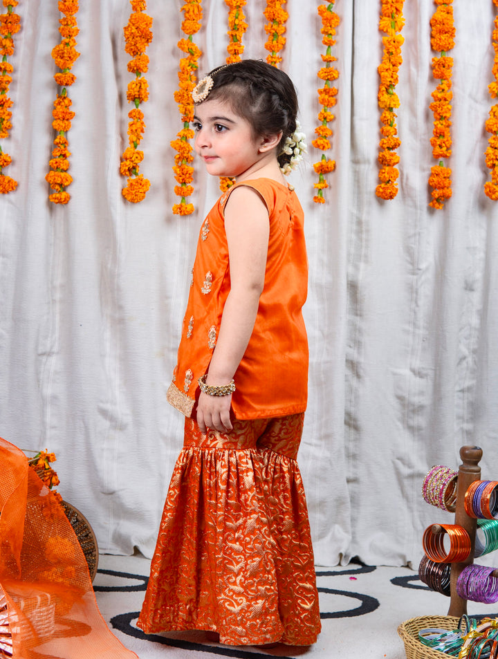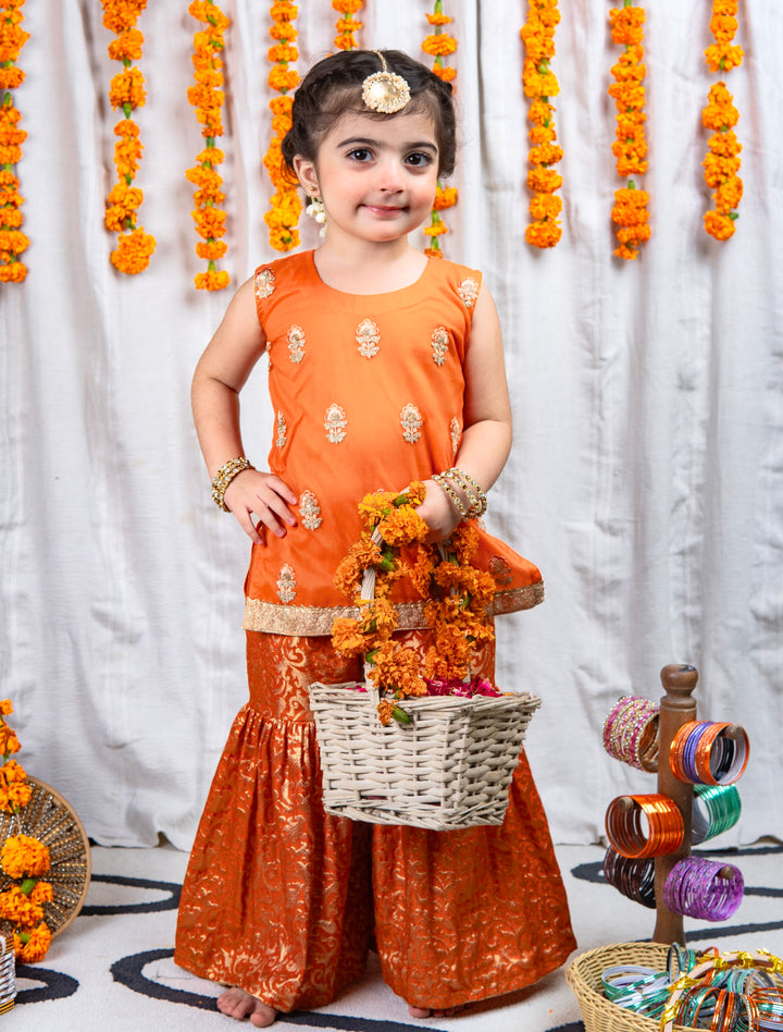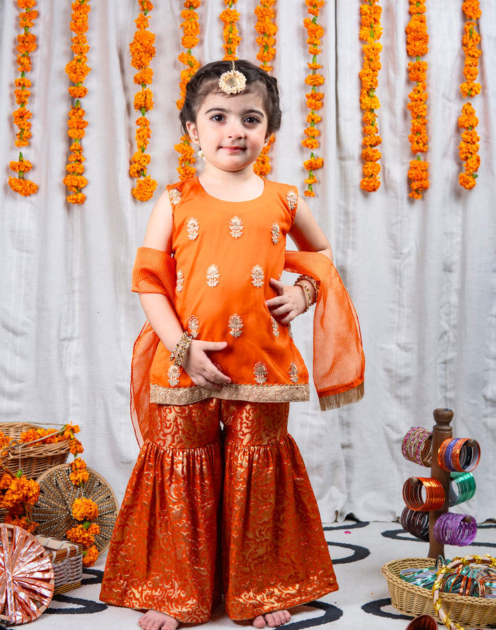 Canvas Kids - Orange Sparkle Gharara Festive Wear Dress For Girls