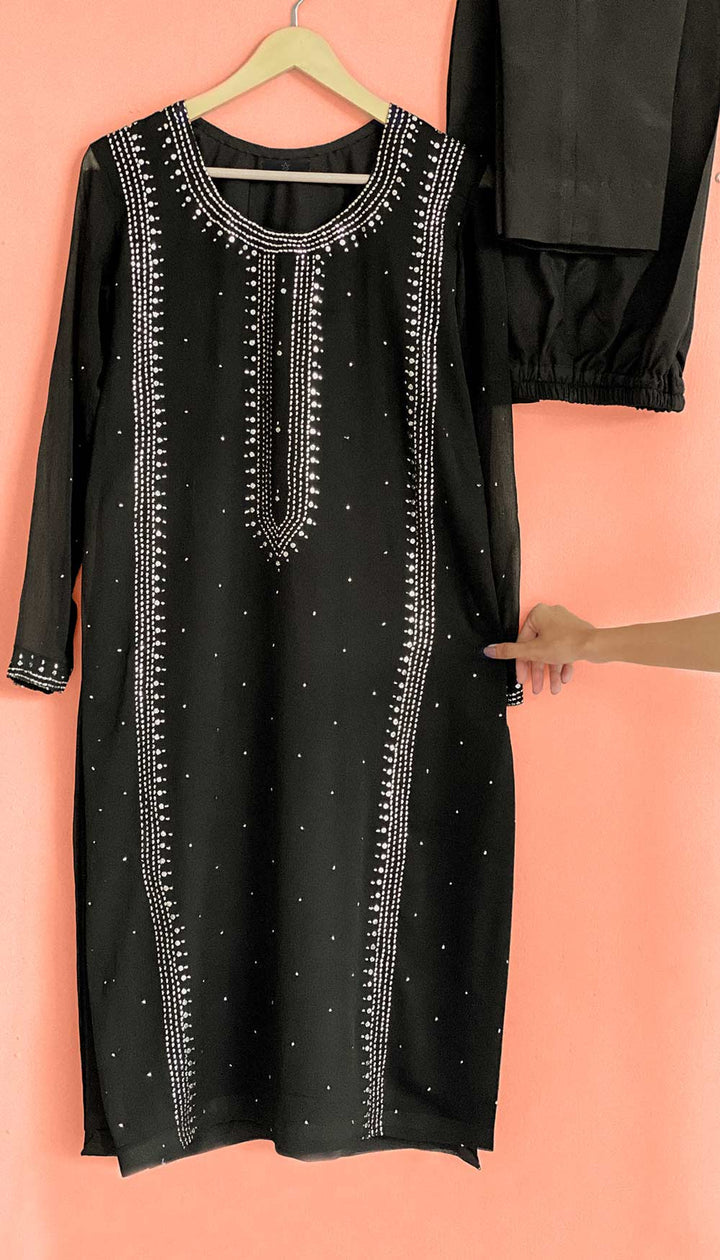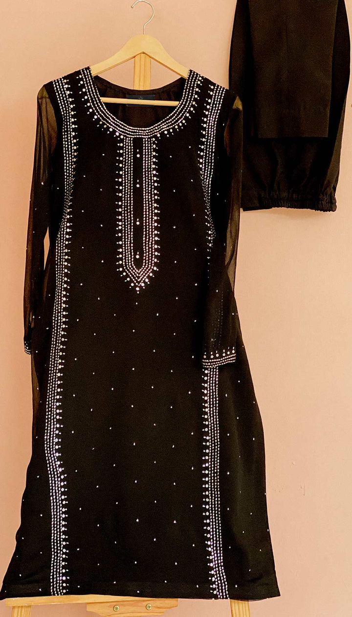 3 piece set includes a Shirt, Cigarette Pants, and Dupatta.