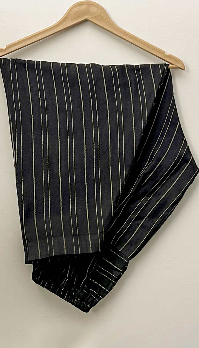 The classic black Karandi "Pinstripe" shirt is a wardrobe staple that never goes out of trend. A wardrobe basic is given a contemporary twist by the sleek black color and the delicate vertical stripes. This shirt is perfect for both professional and everyday wear. With its sophisticated edge and guaranteed comfort, the plush Karandi fabric accentuates its beautiful design.